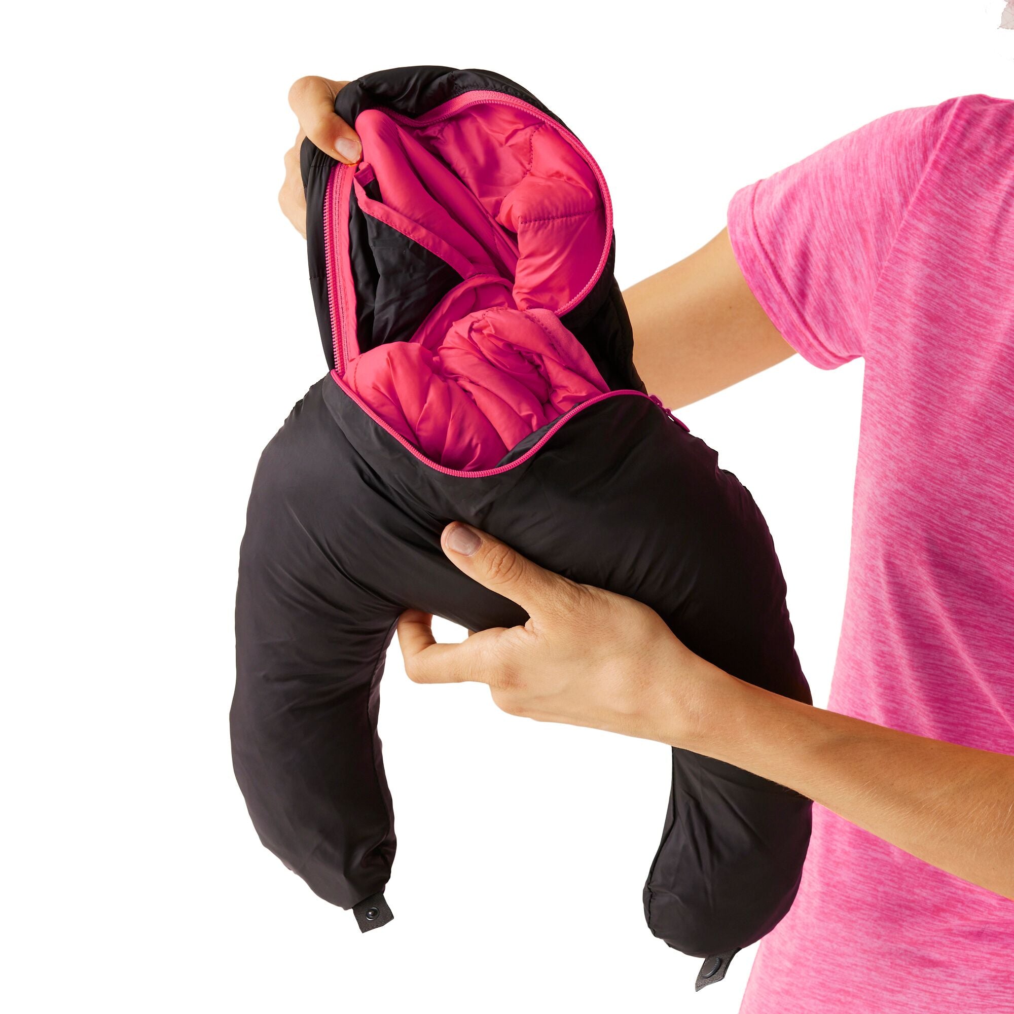 • Packs away and convert into a neck pillow