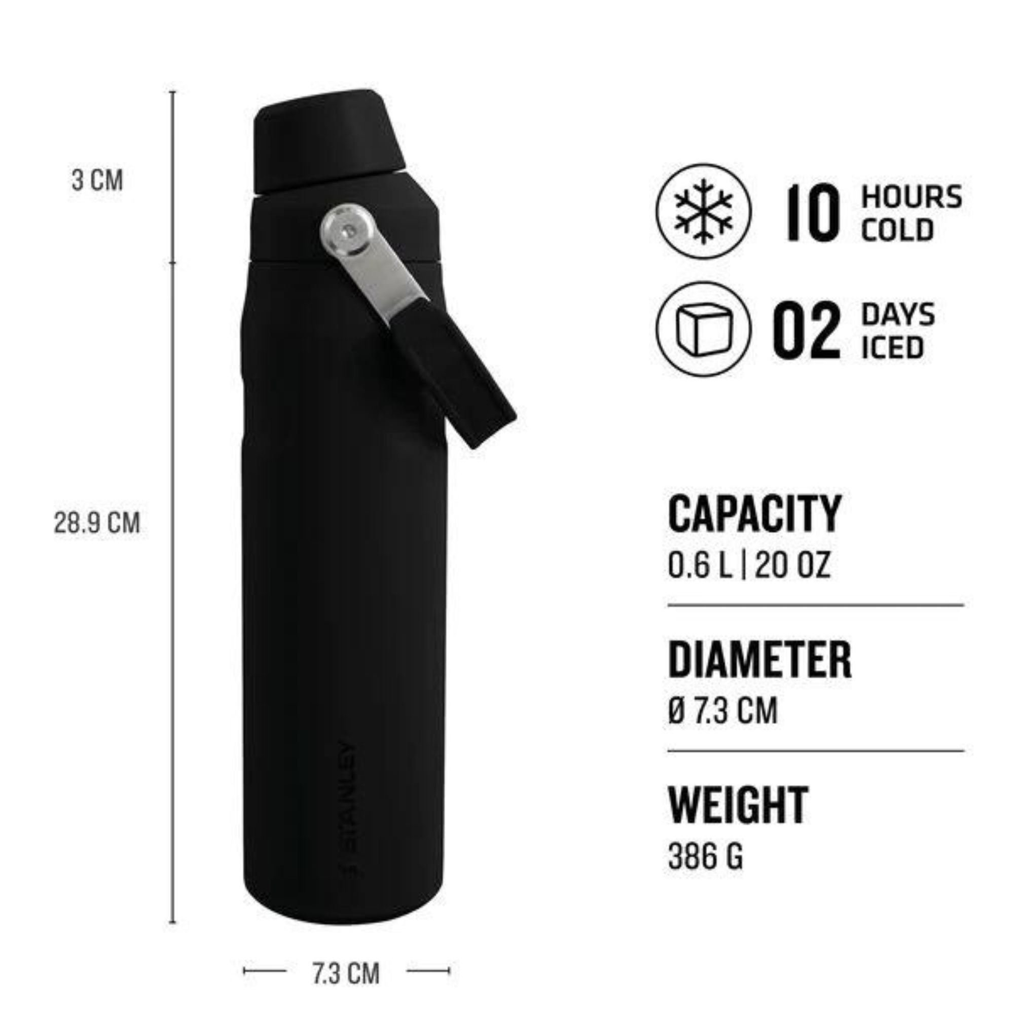 For the ones with an active lifestyle, the Aerolight™ Iceflow Bottle with a fast flow lid is made with 90% recycled stainless steel. Designed with a large spout opening for fast flow when you need quick refreshment before, during or after sporting endeavours. The wide mouth opening is not only for fast flow but for easy cleaning. The recessed grip on the bottle and easy carry handle make it effortless to have with you all-day, everyday. The lid simply twists off and can be attached to the carrying handle using the integrated hook. By using the wide opening you can refill your bottle and add some ice or fruit to help you on your hydration journey whatever your persuation may be. The vessle is made to be one of our lightest porducts yet the vacuum insulation and is performance driven keeping your drinks cold for 10 hours and Iced for 2 days. The bottle is also cupholder compatible and dishwasher safe, allowing for a seemless integration into your busy on-the-go lifestyle.