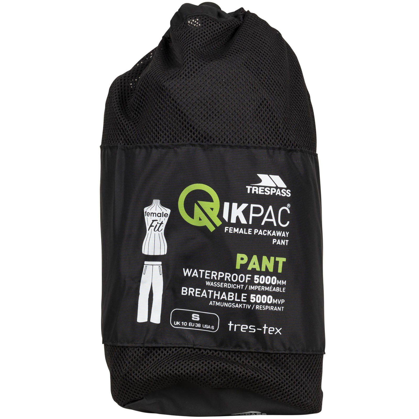 Trespass Womens Quikpack Packable Waterproof Overtrousers - Black