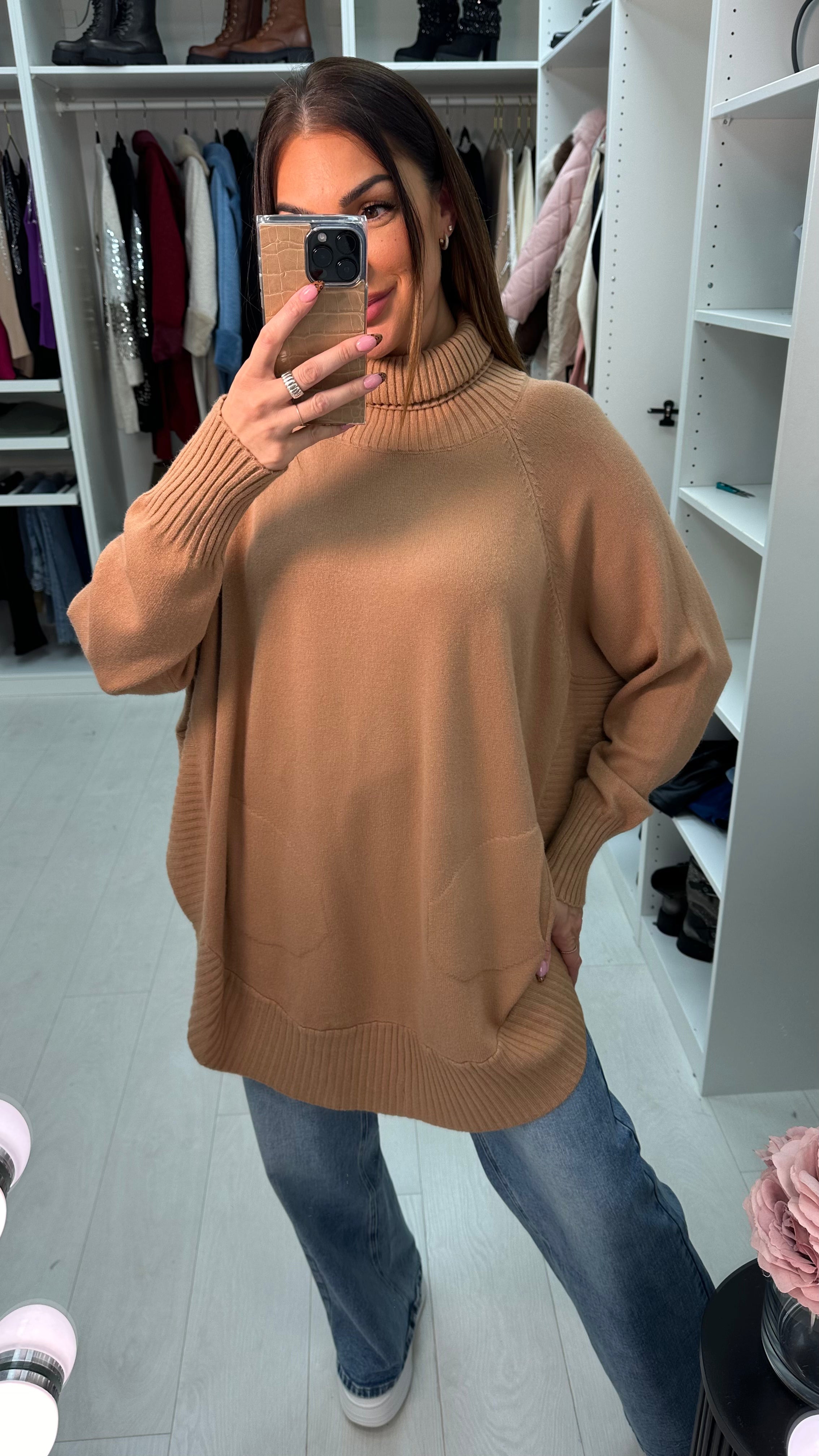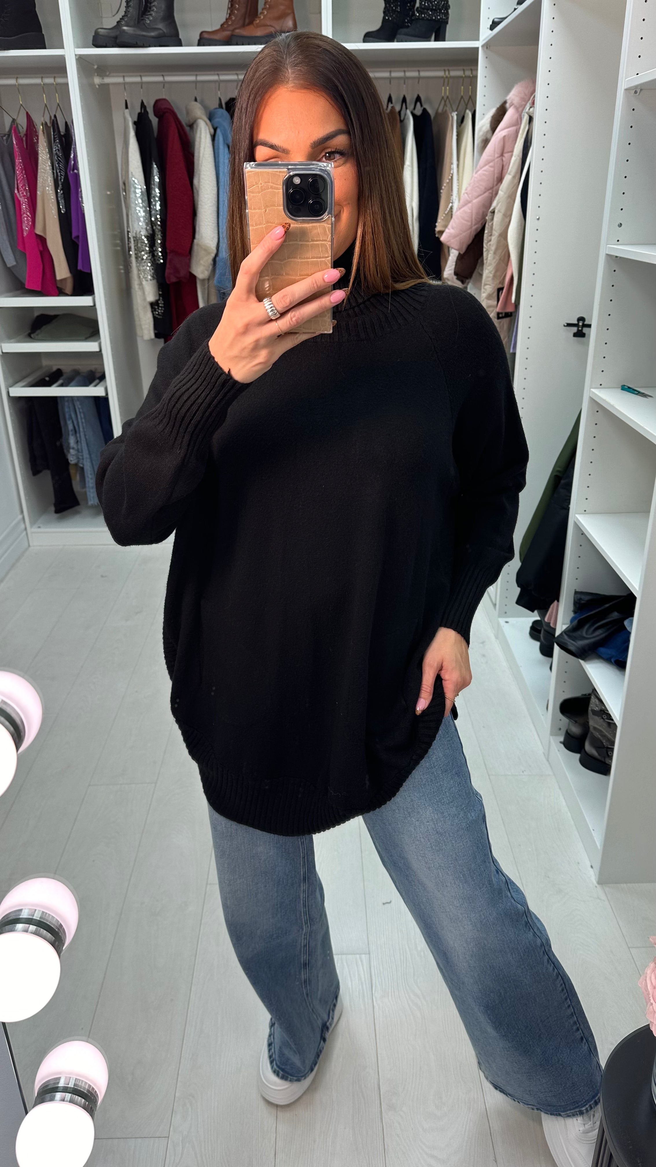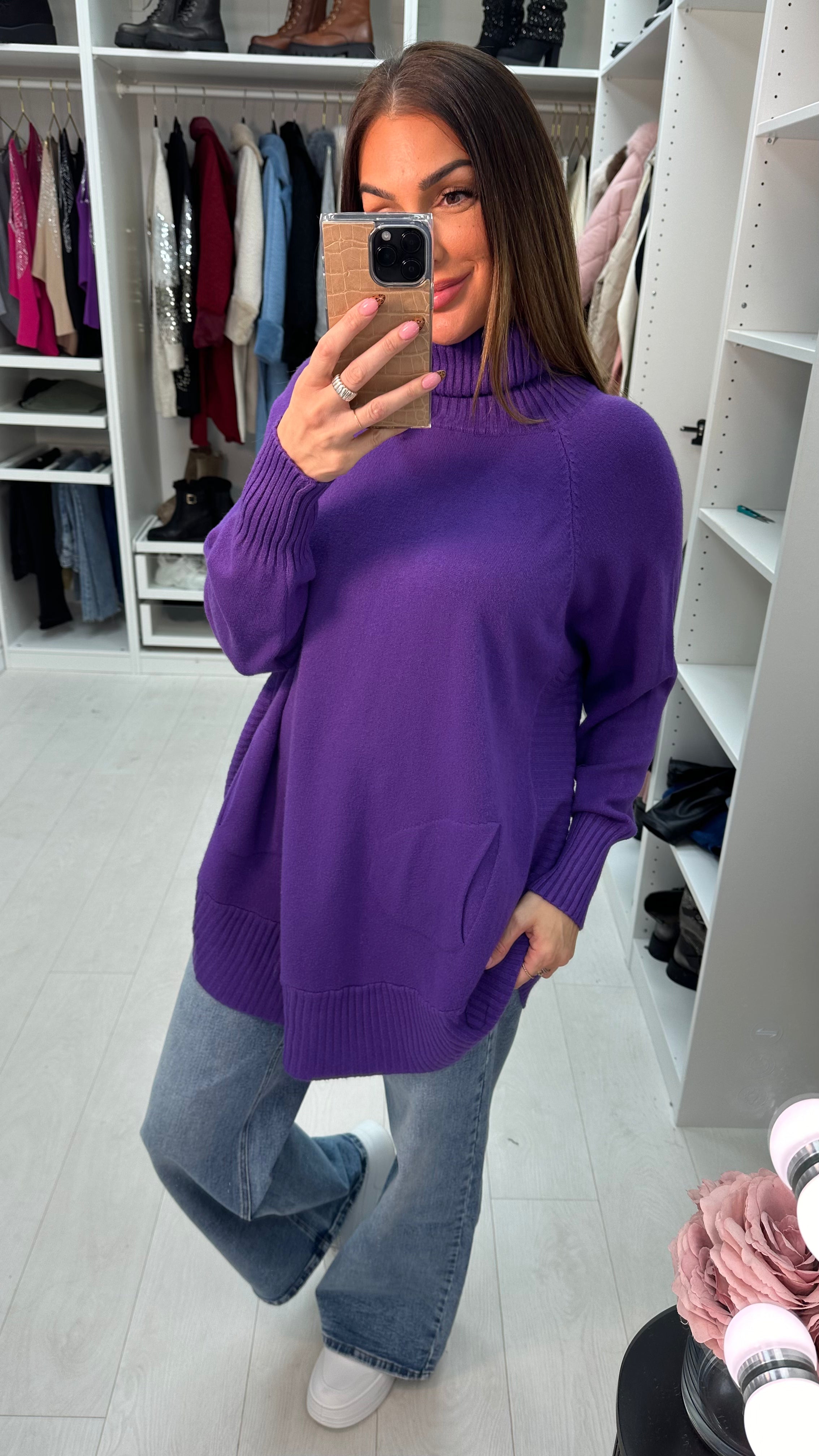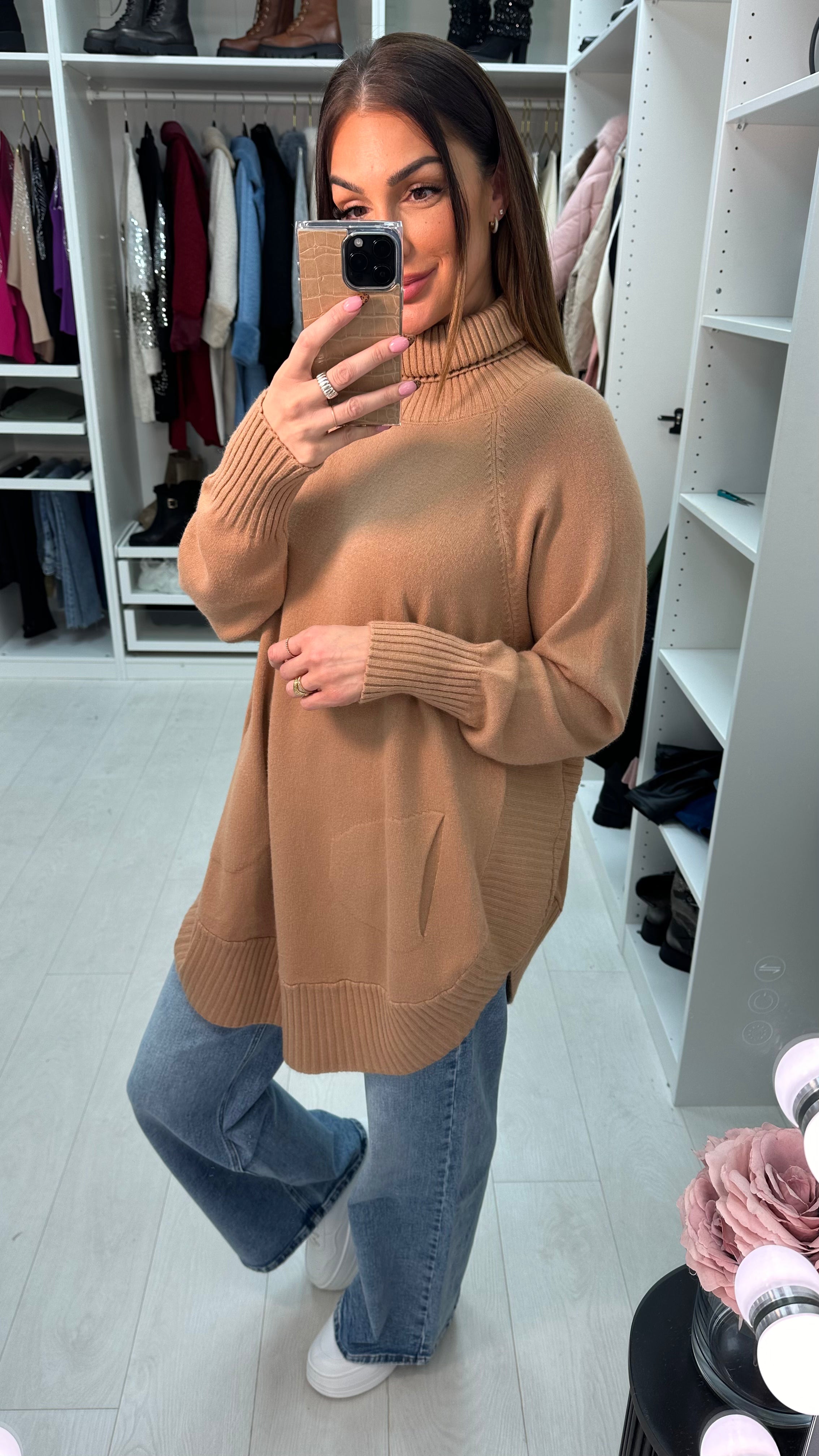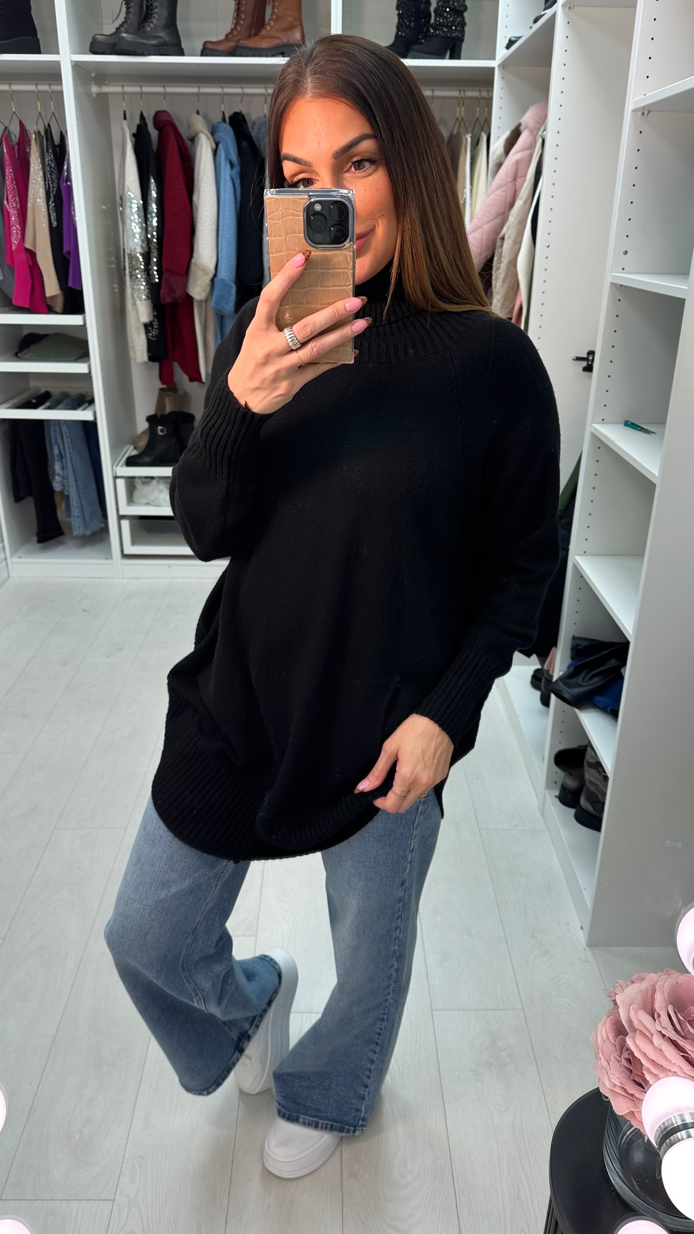 Ailani Plain Roll Neck Loose Fit Jumper