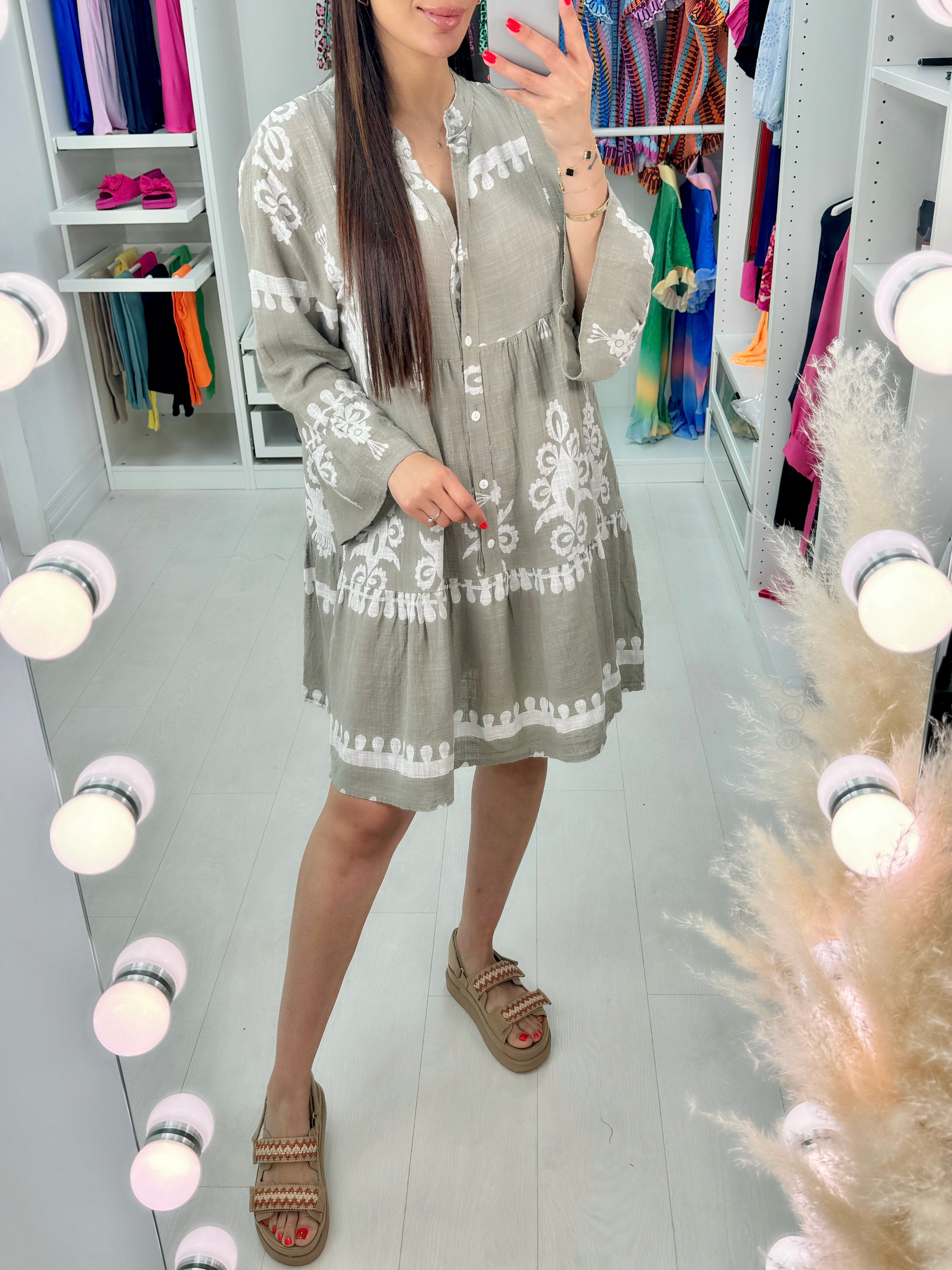 Almeida Printed Linen Smock Dress