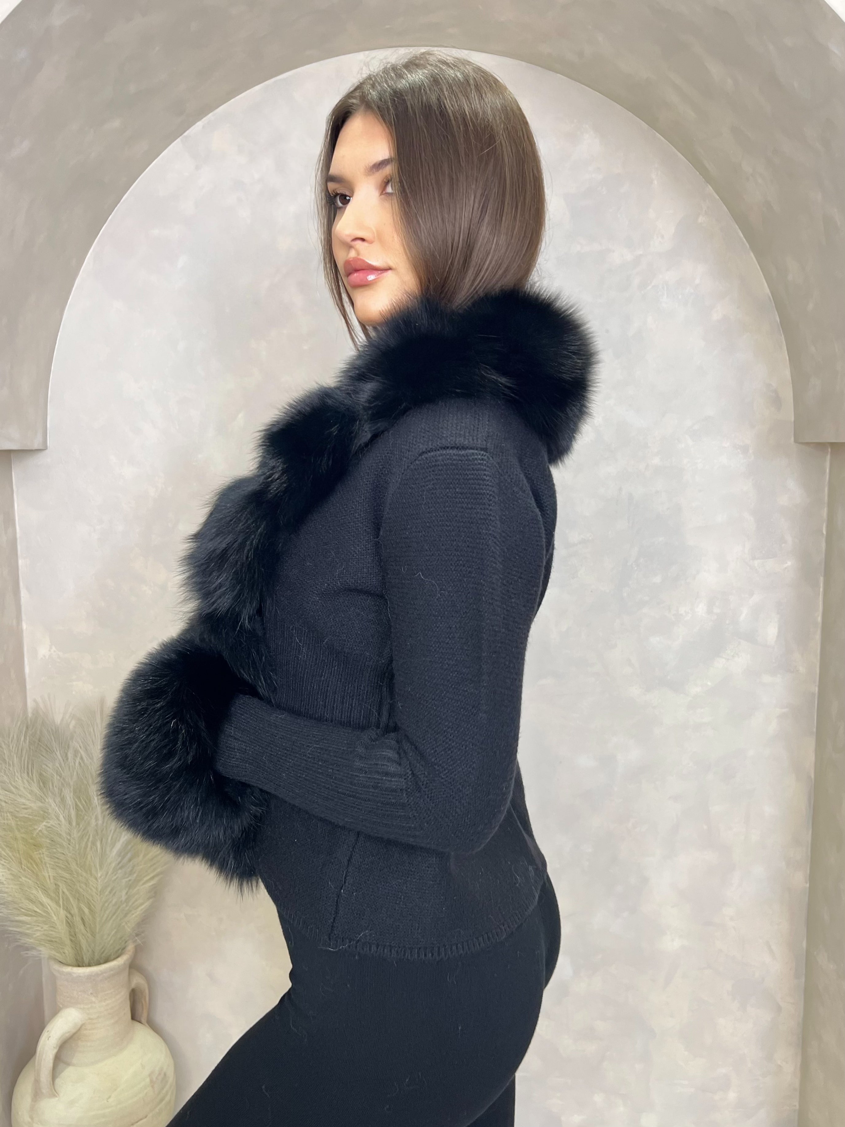 Black Luxury Fur Cardigan