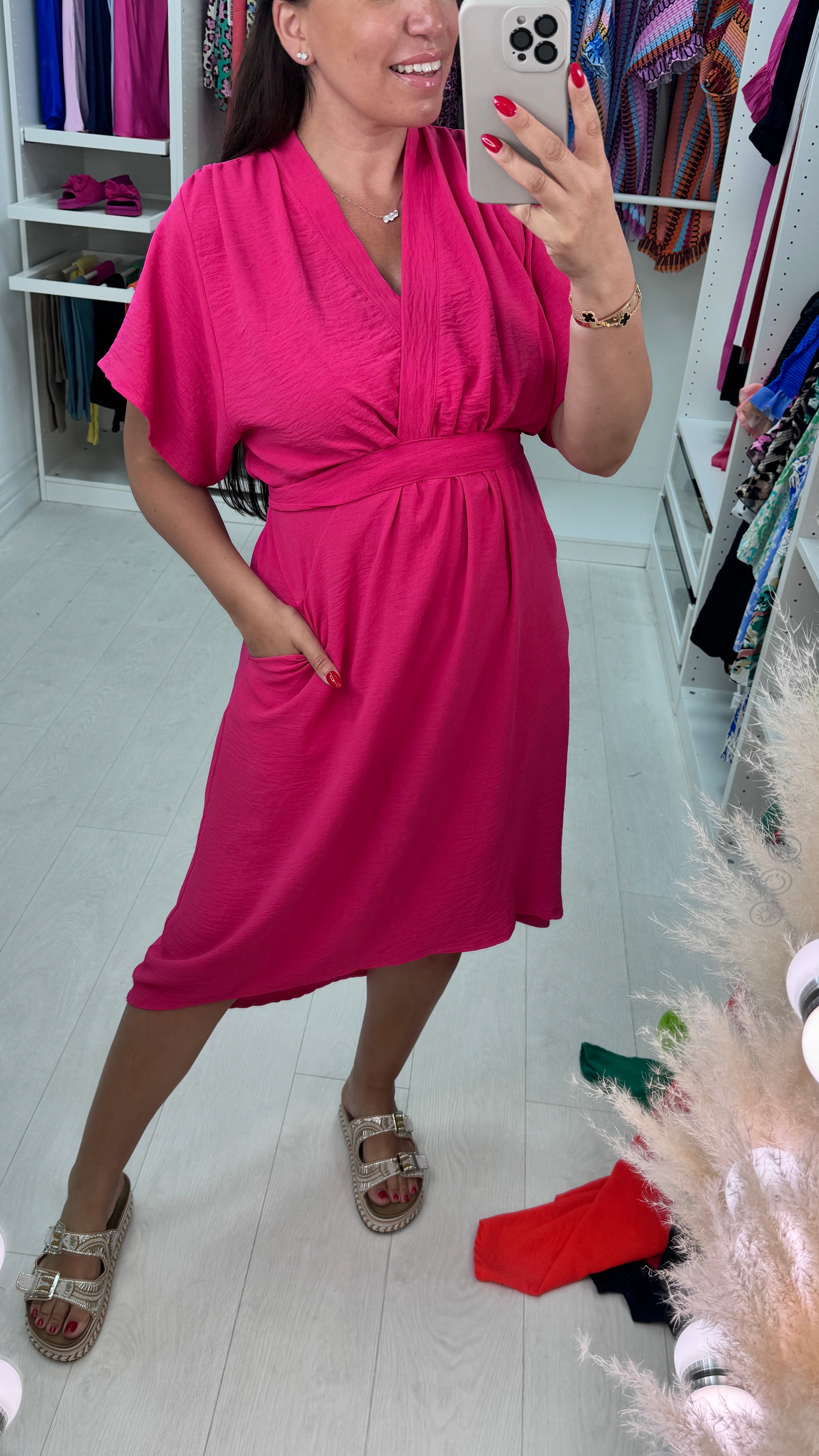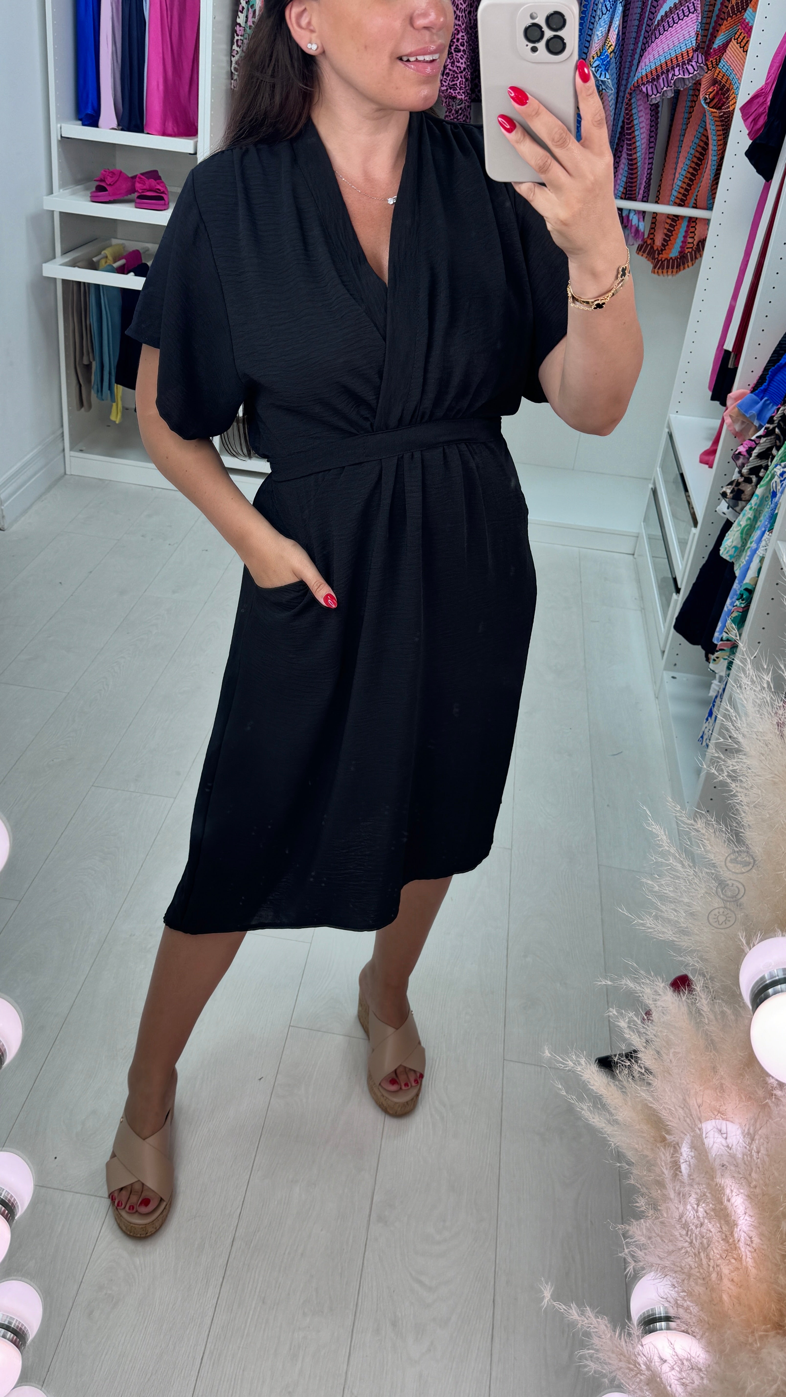 Clarissa Wrap Effect Pocket Shift Dress