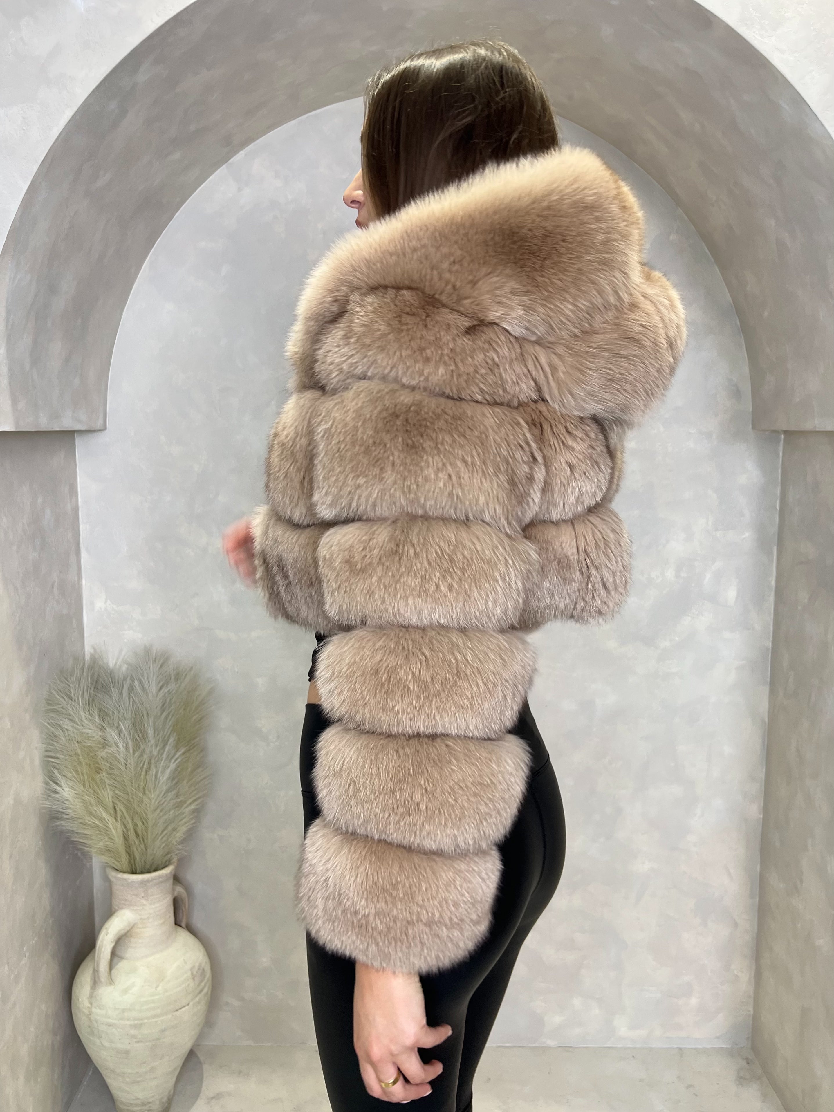 Tan Luxury Fur Hooded Jacket