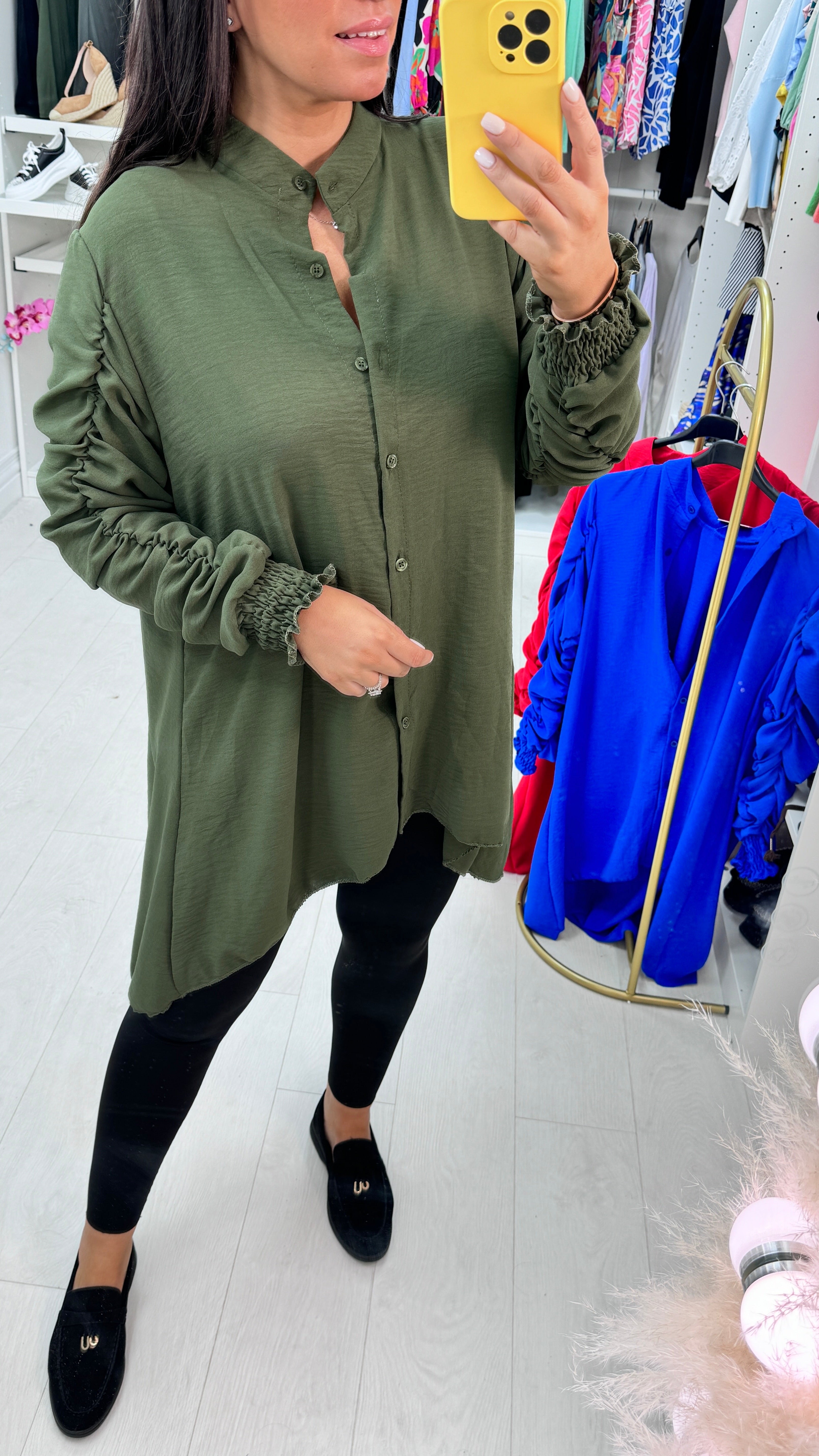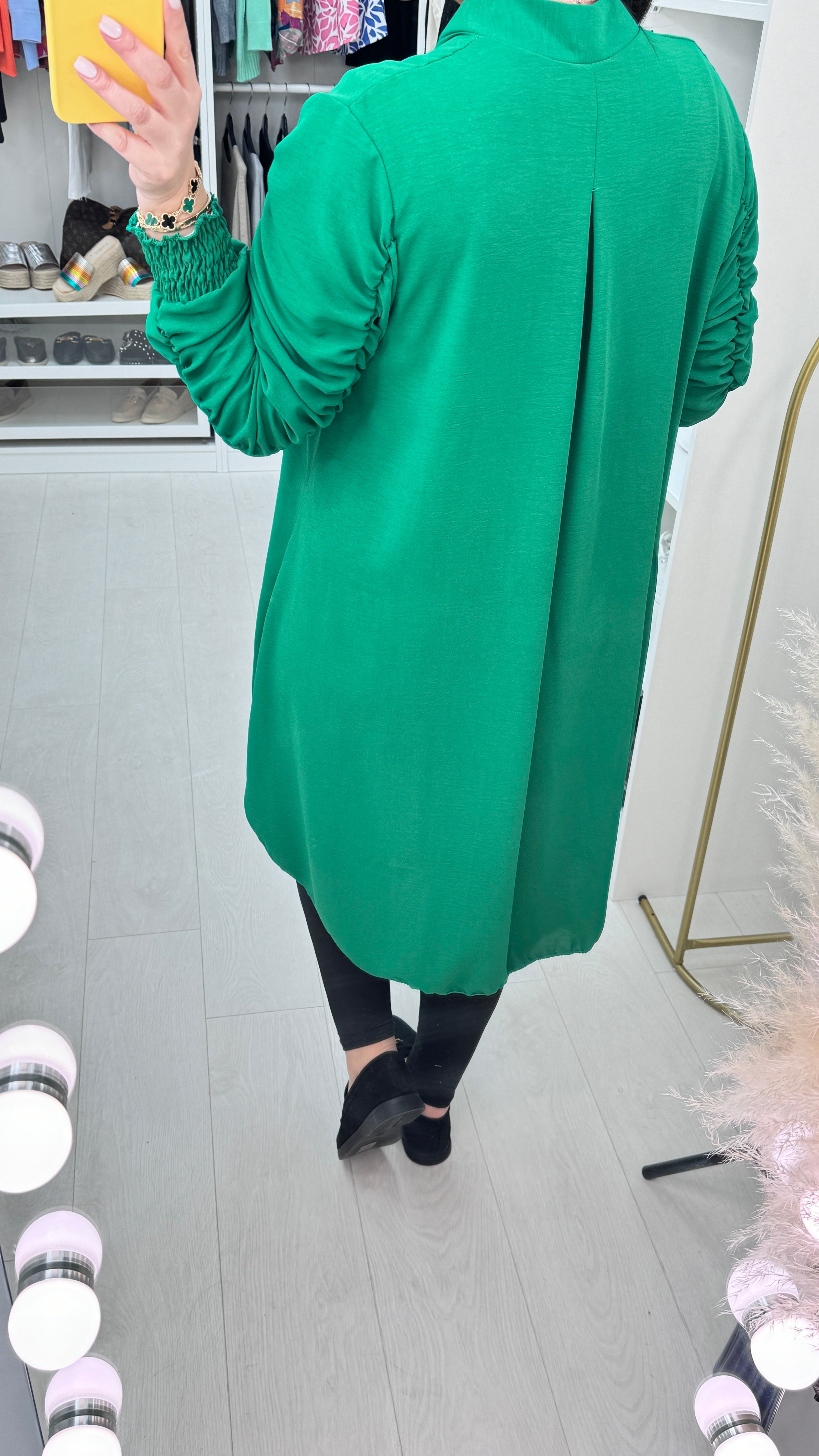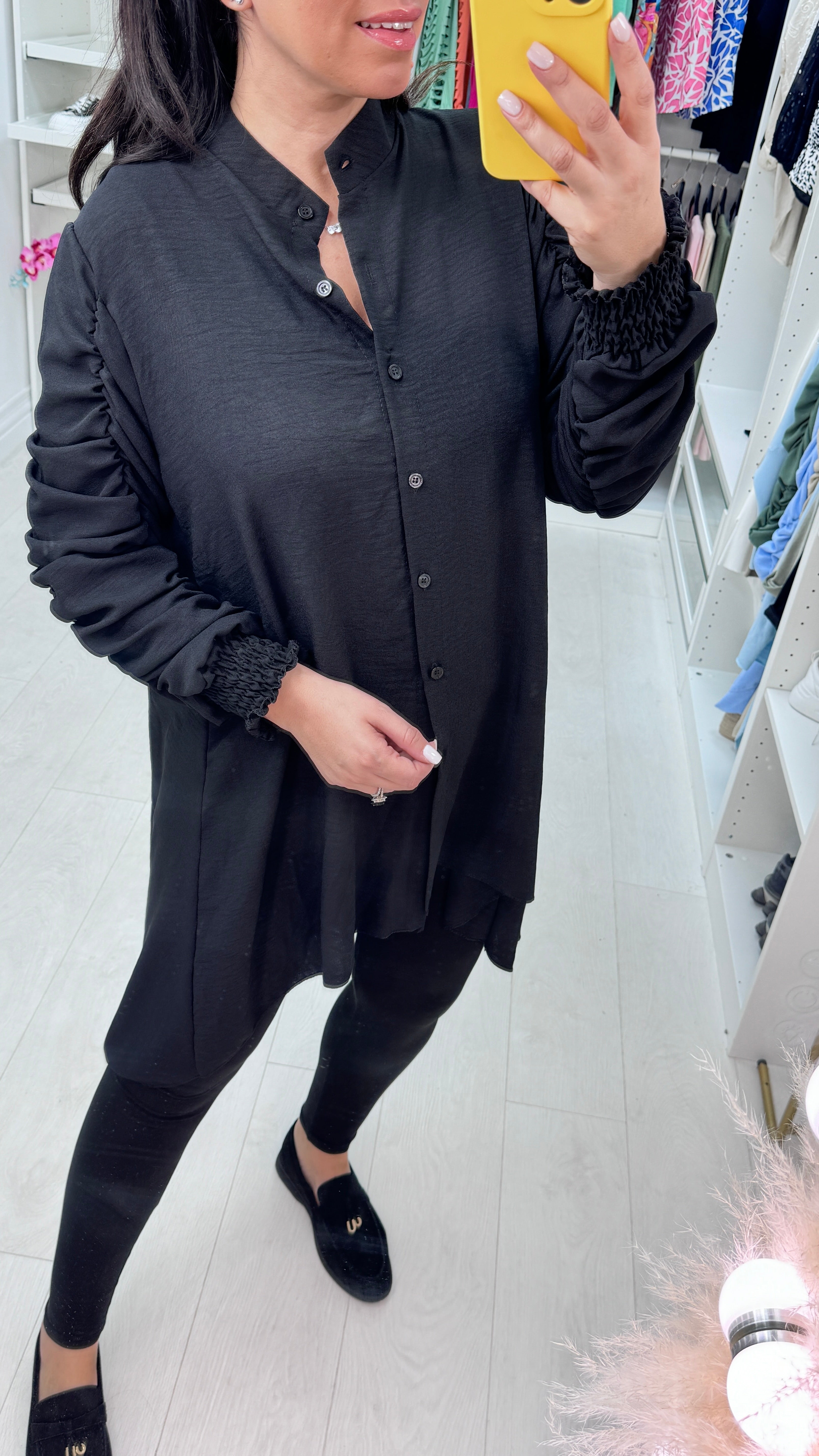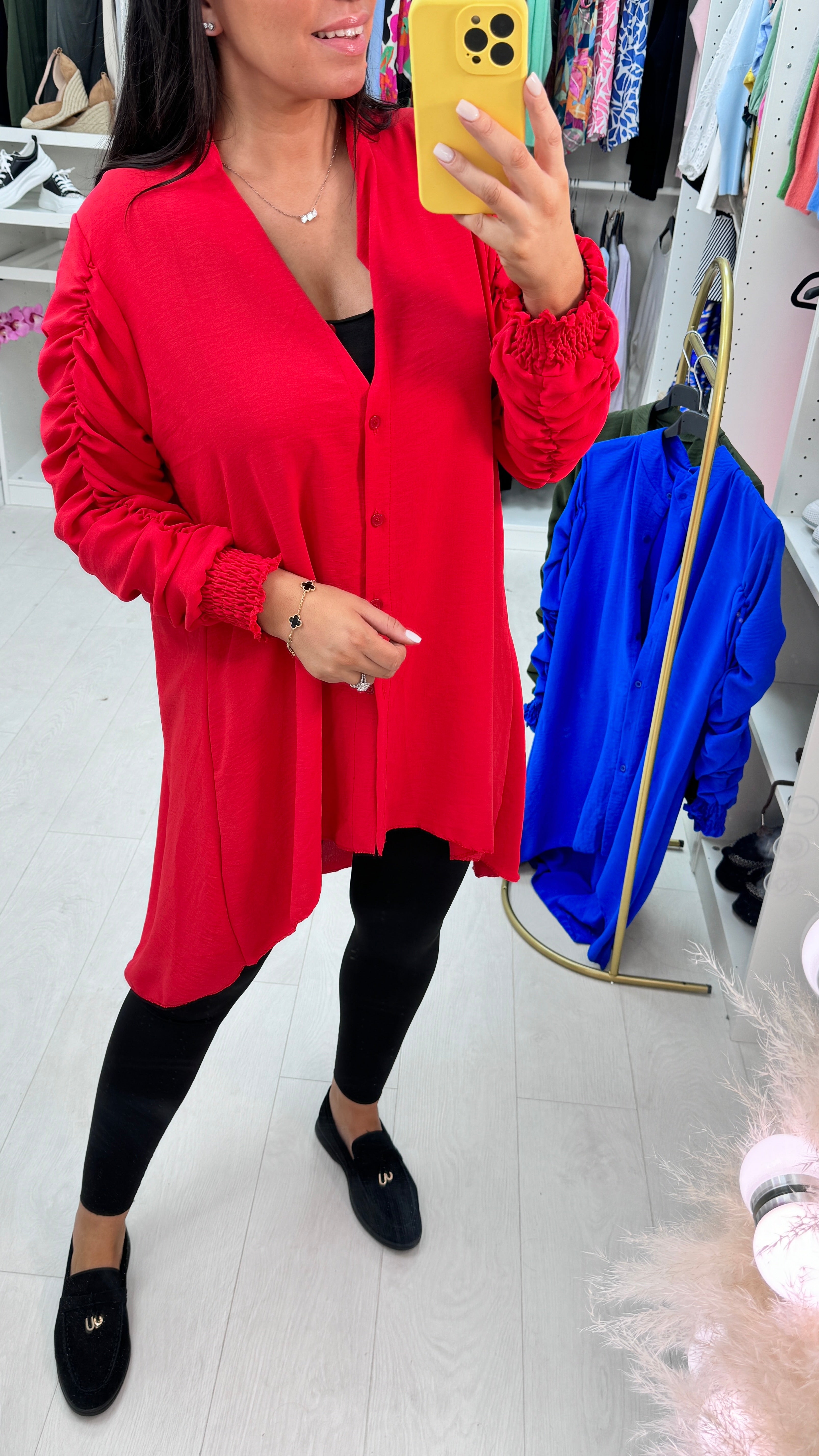 Cora Dipped Hem Ruched Sleeve Shirt