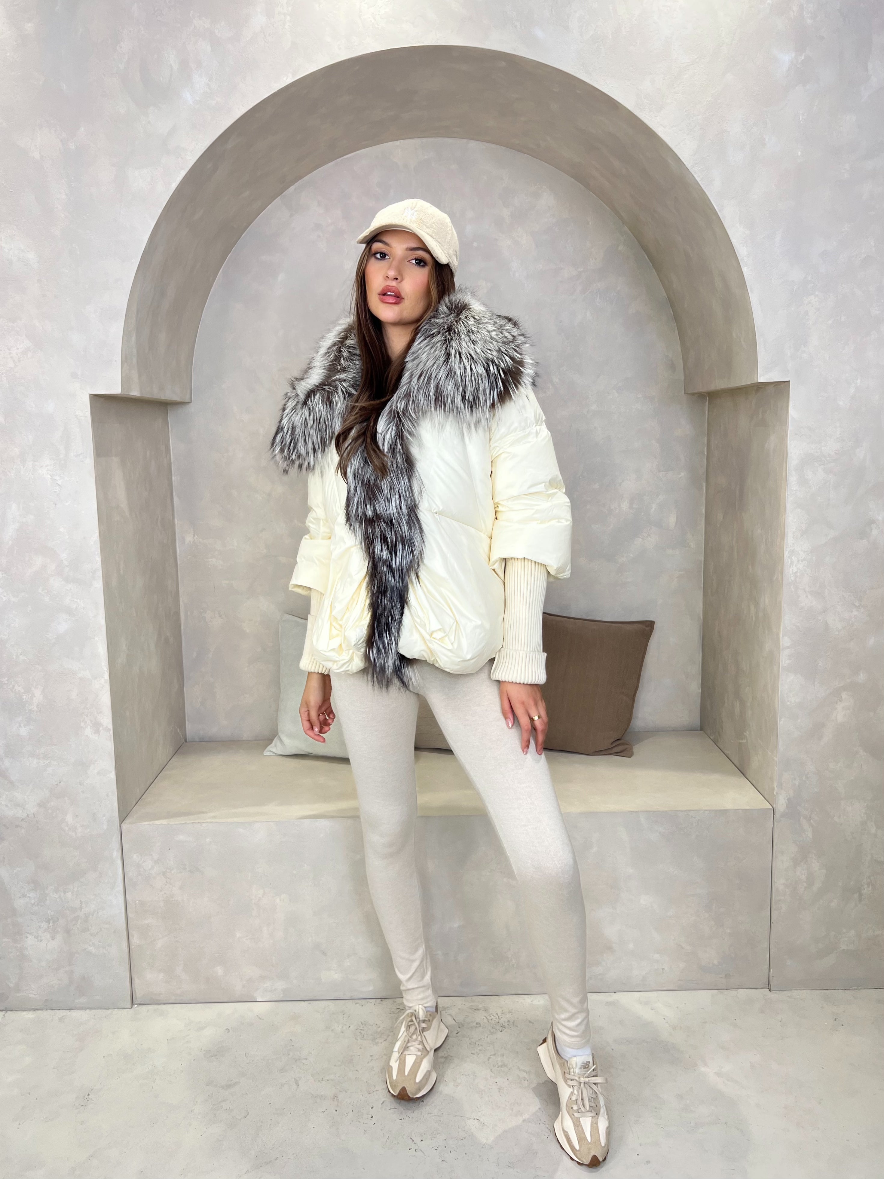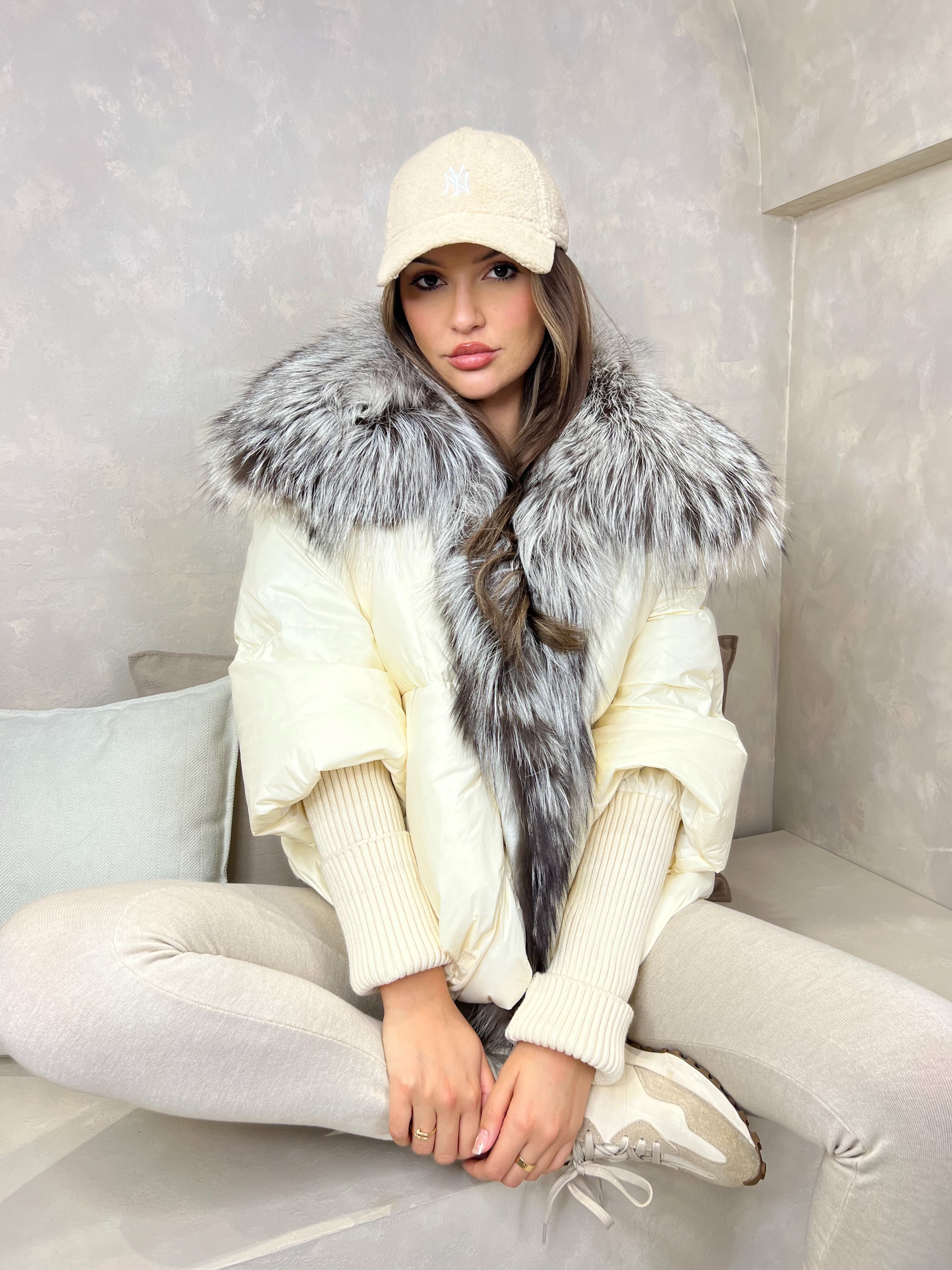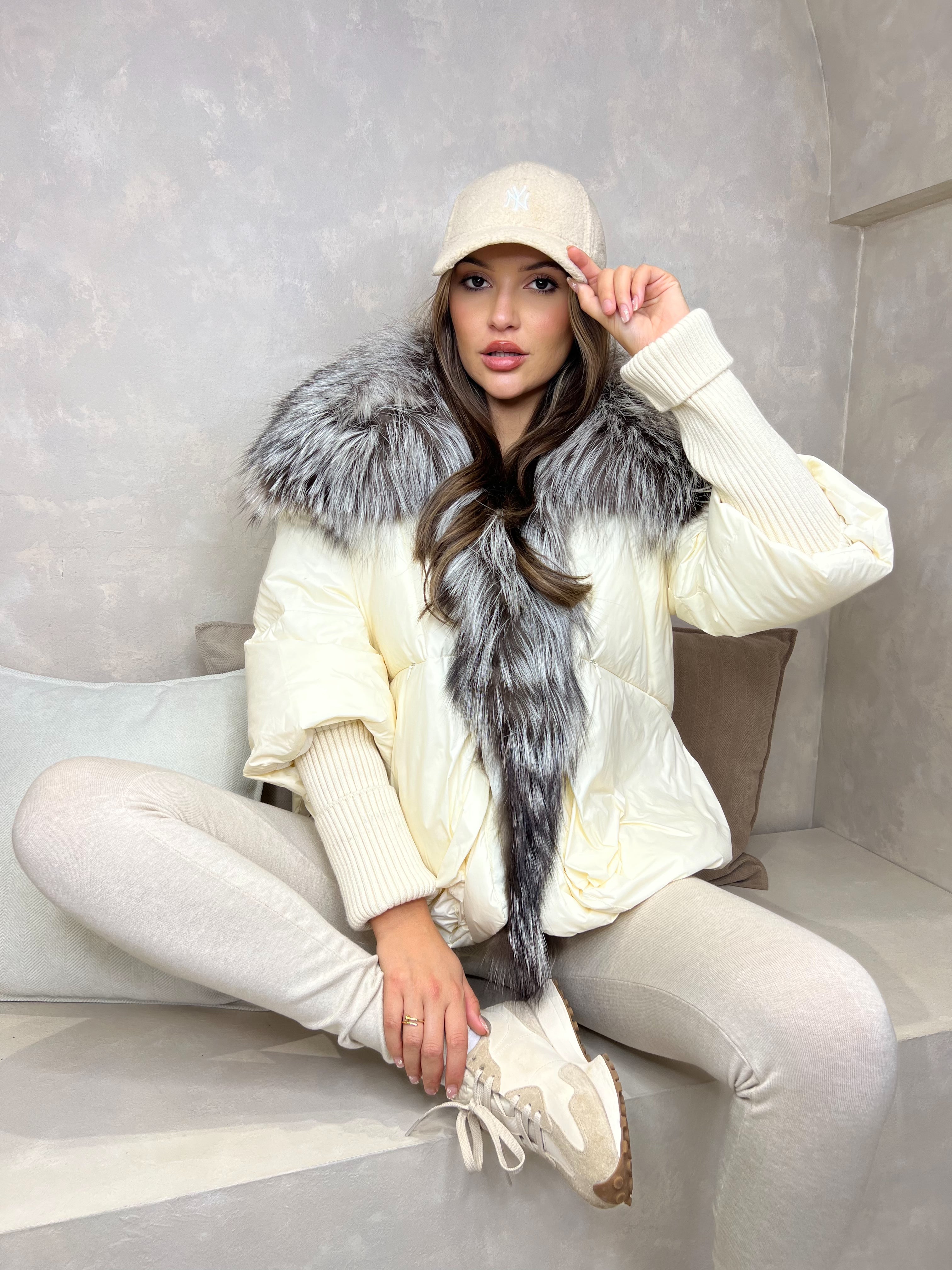 Cream Luxury Fur Trim Jacket