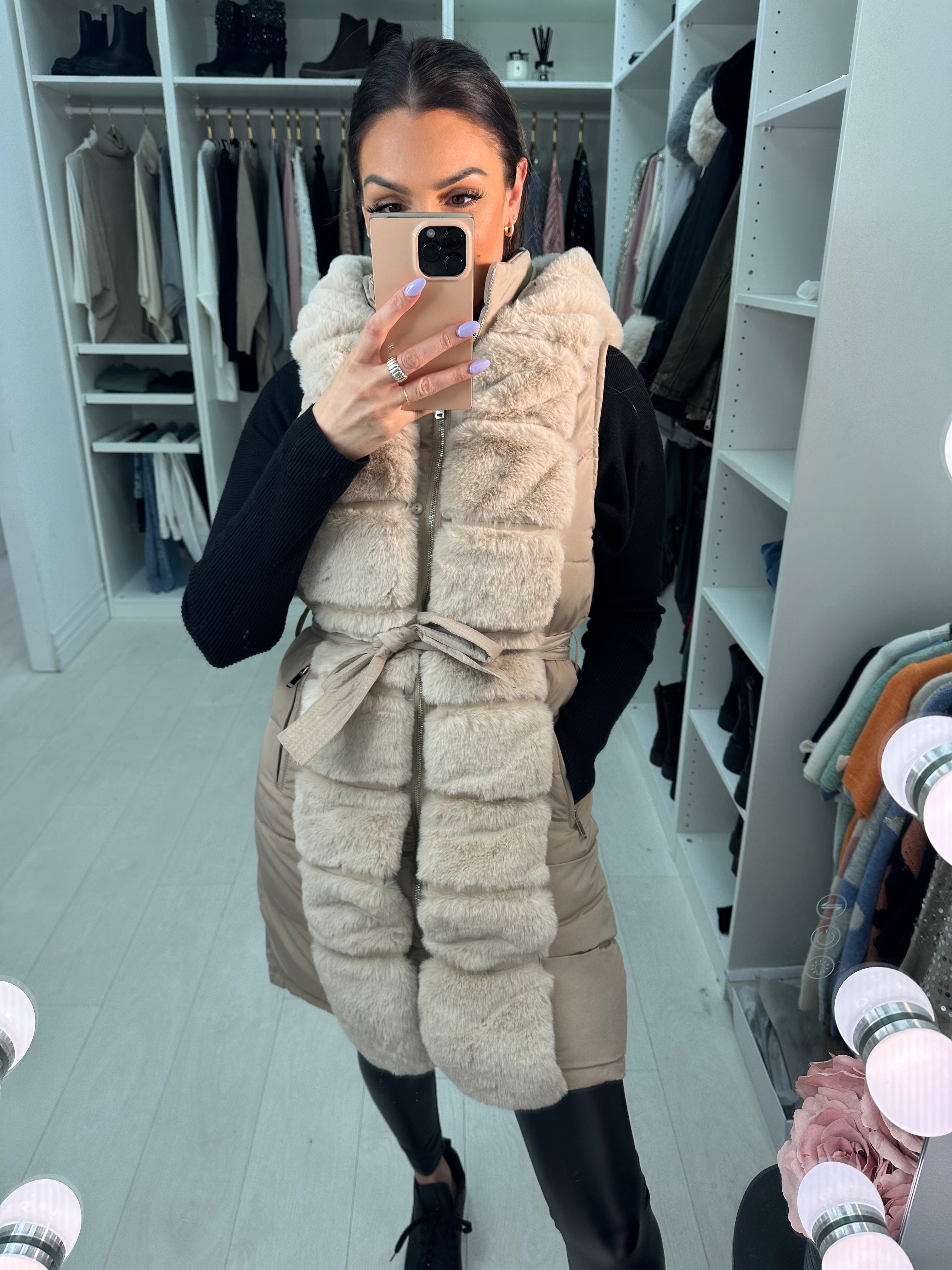 Cynthia Faux Fur Padded Belted Gilet