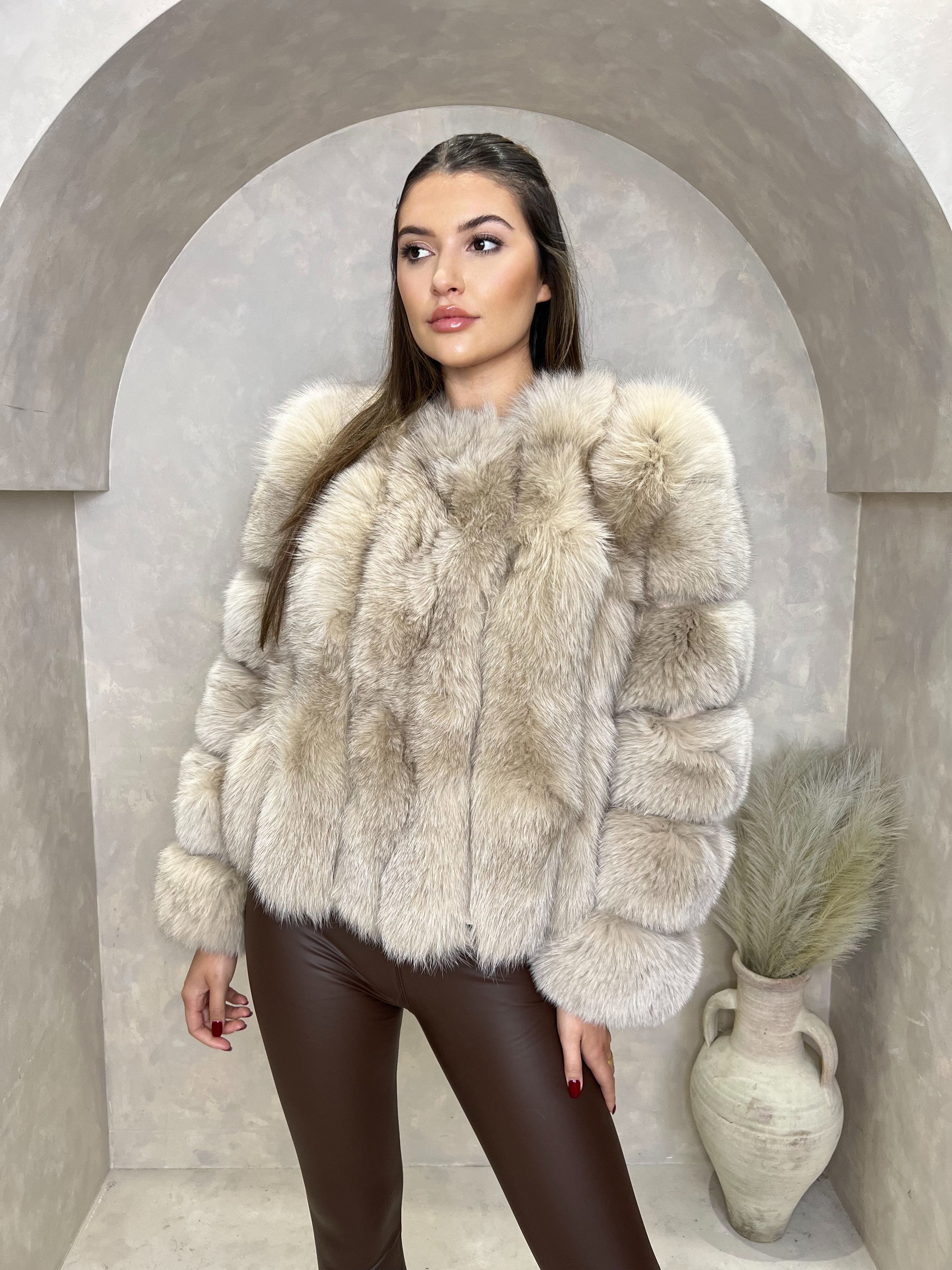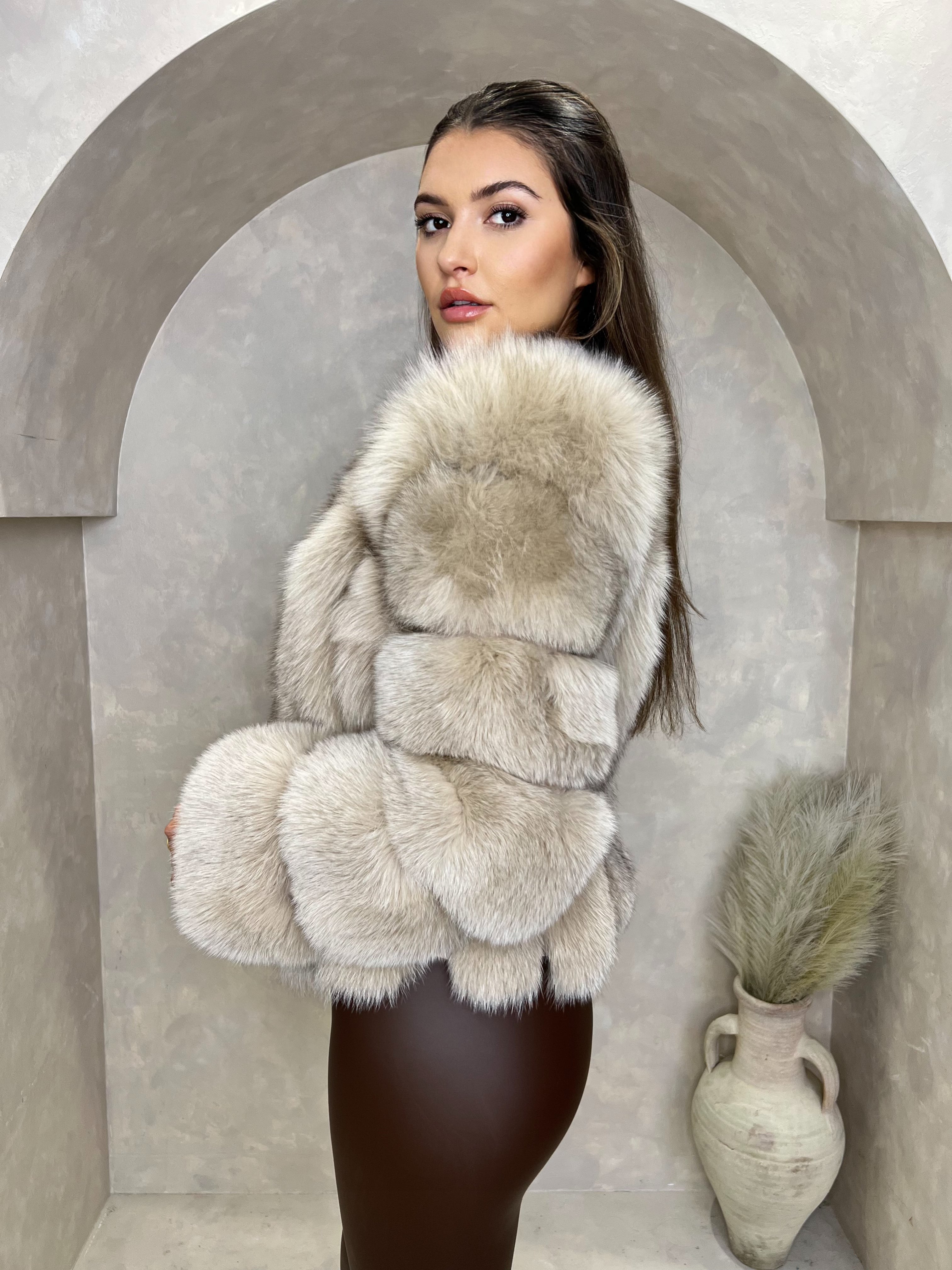Beige Luxury Fur Vertical Pelt Coat