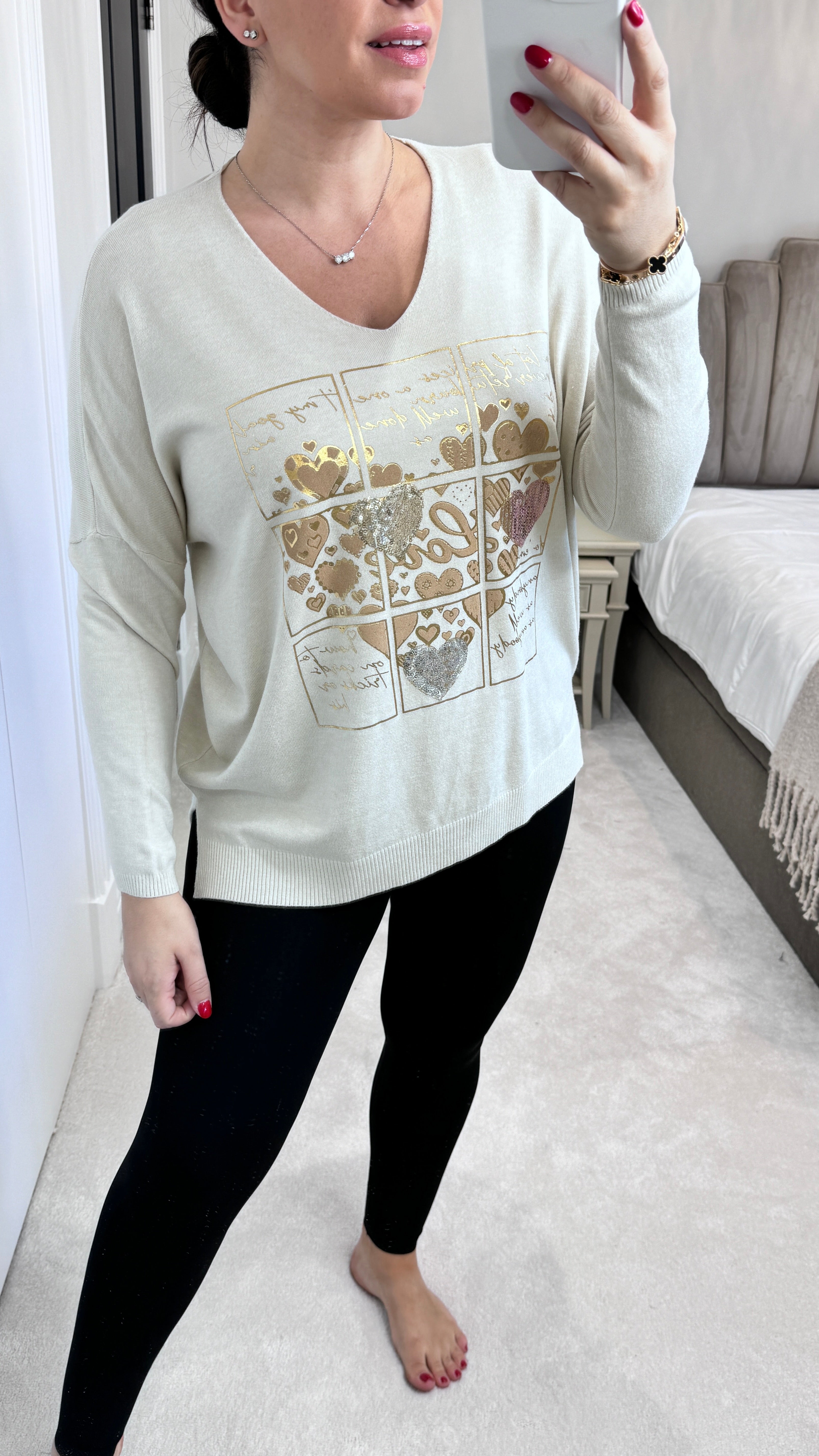 Demi 'Love' Metallic and Sequin Detail Fine Knit