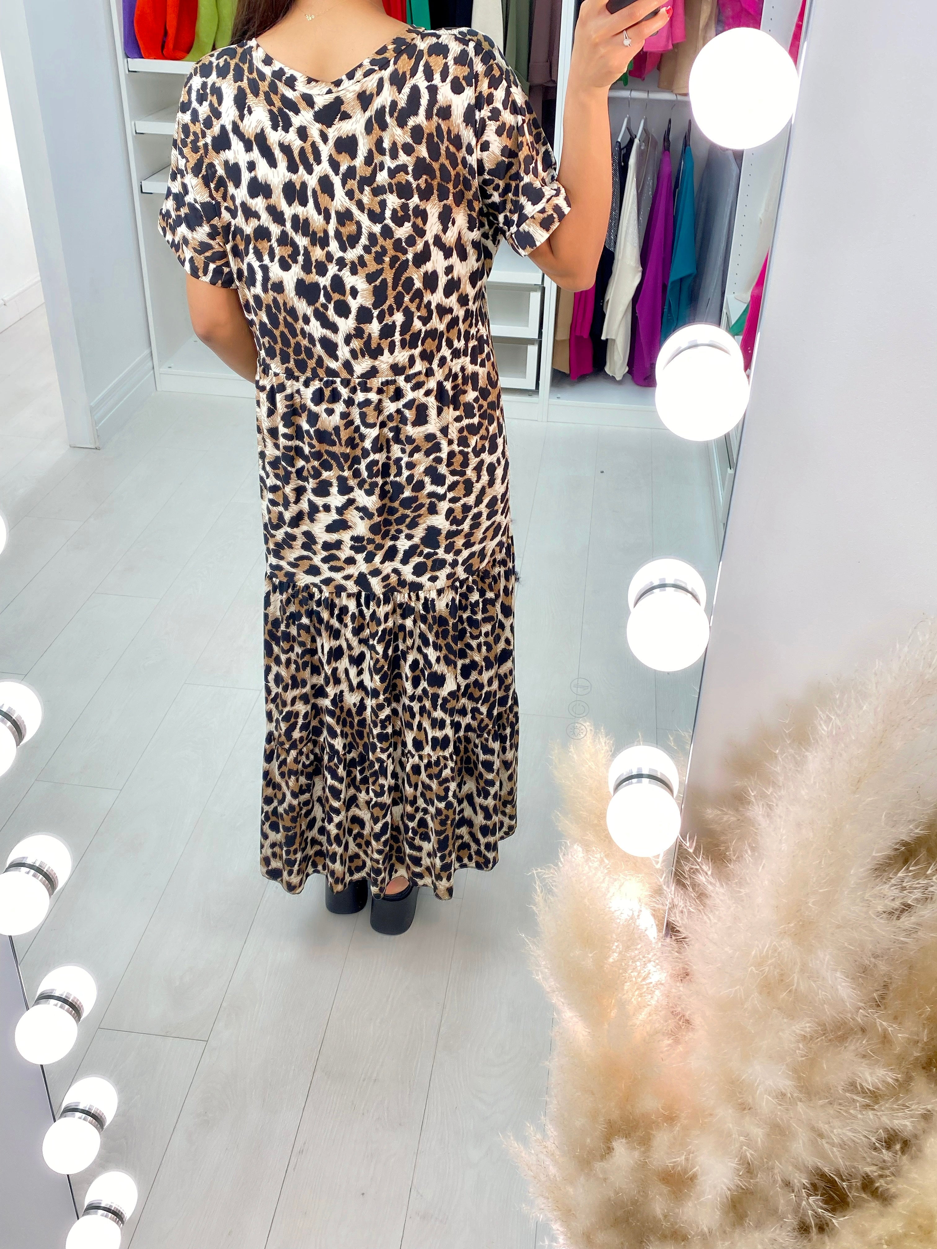 Duha Leopard Print V-Neck Smock Maxi Dress