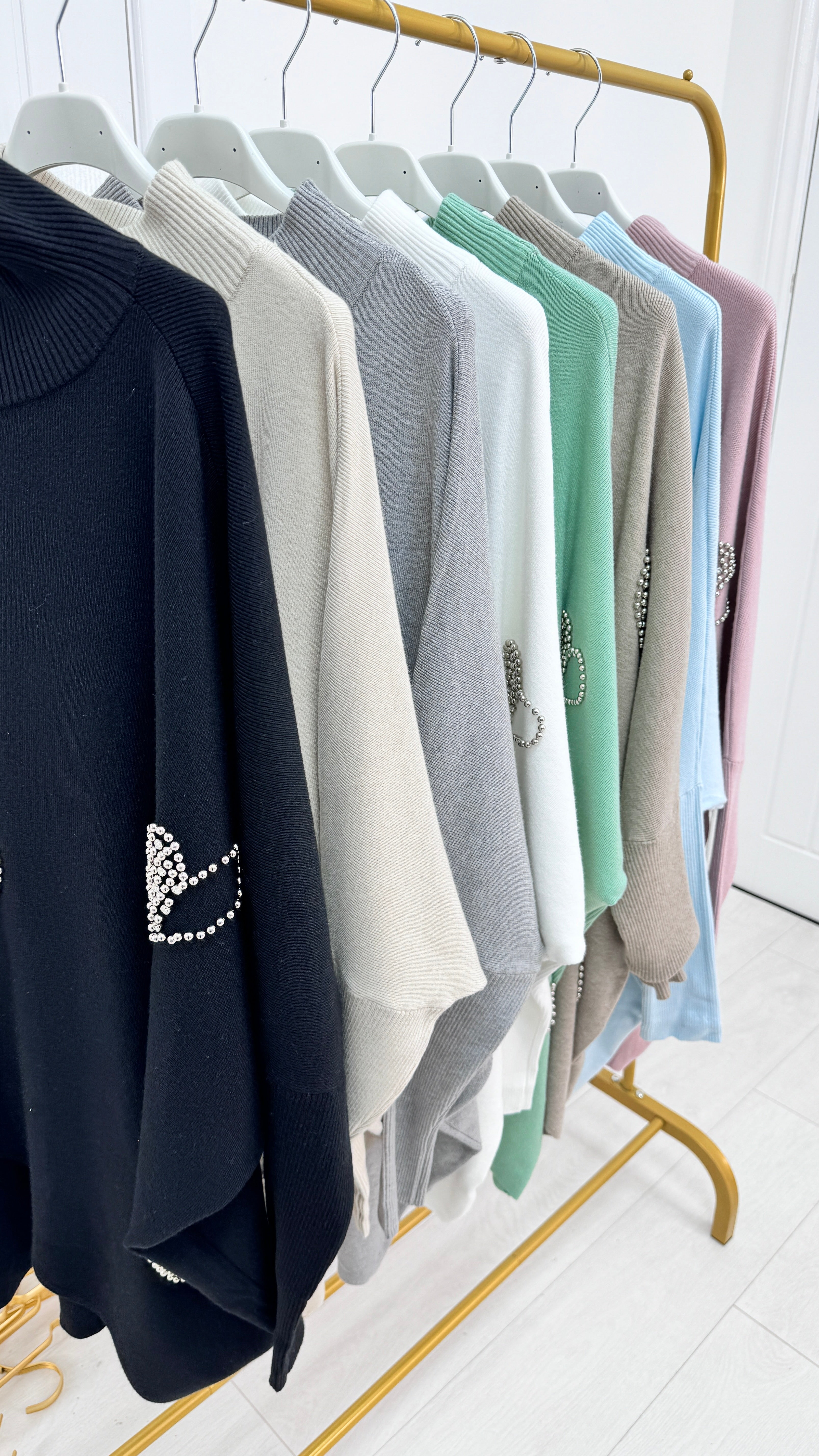 Eileen Heart Studded High Neck Jumper