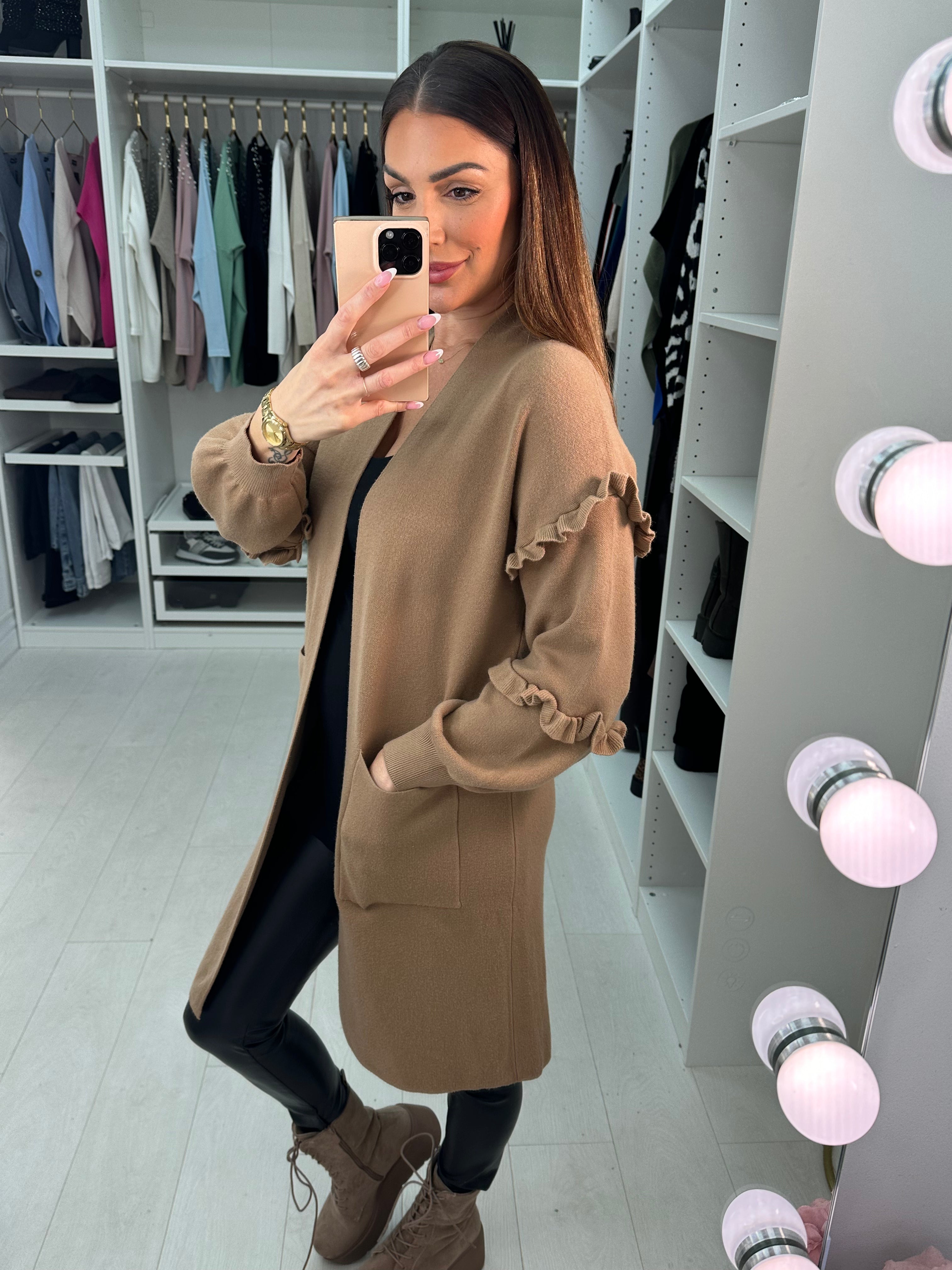 Erika Longline Frill Detail Knit Cardigan