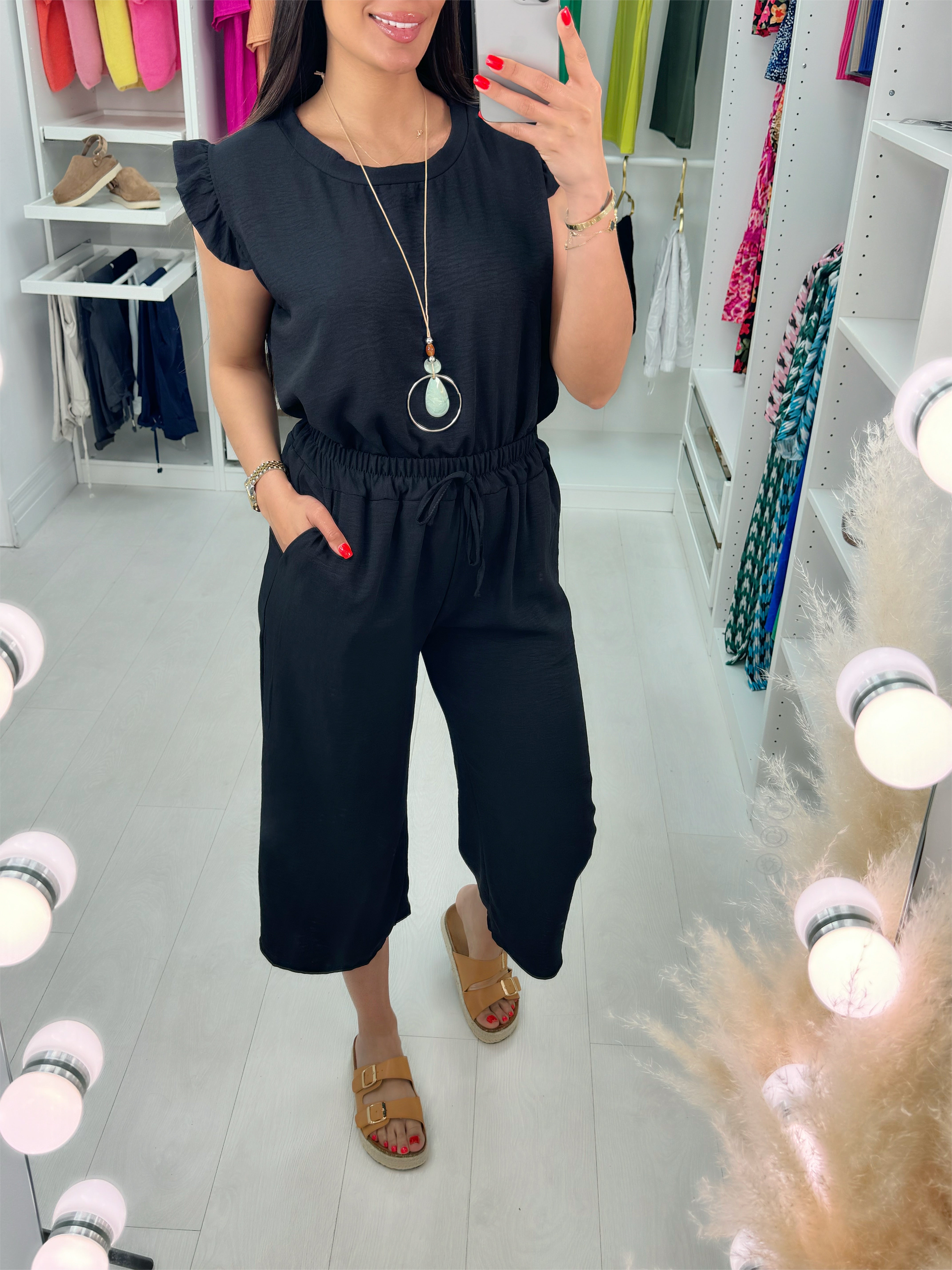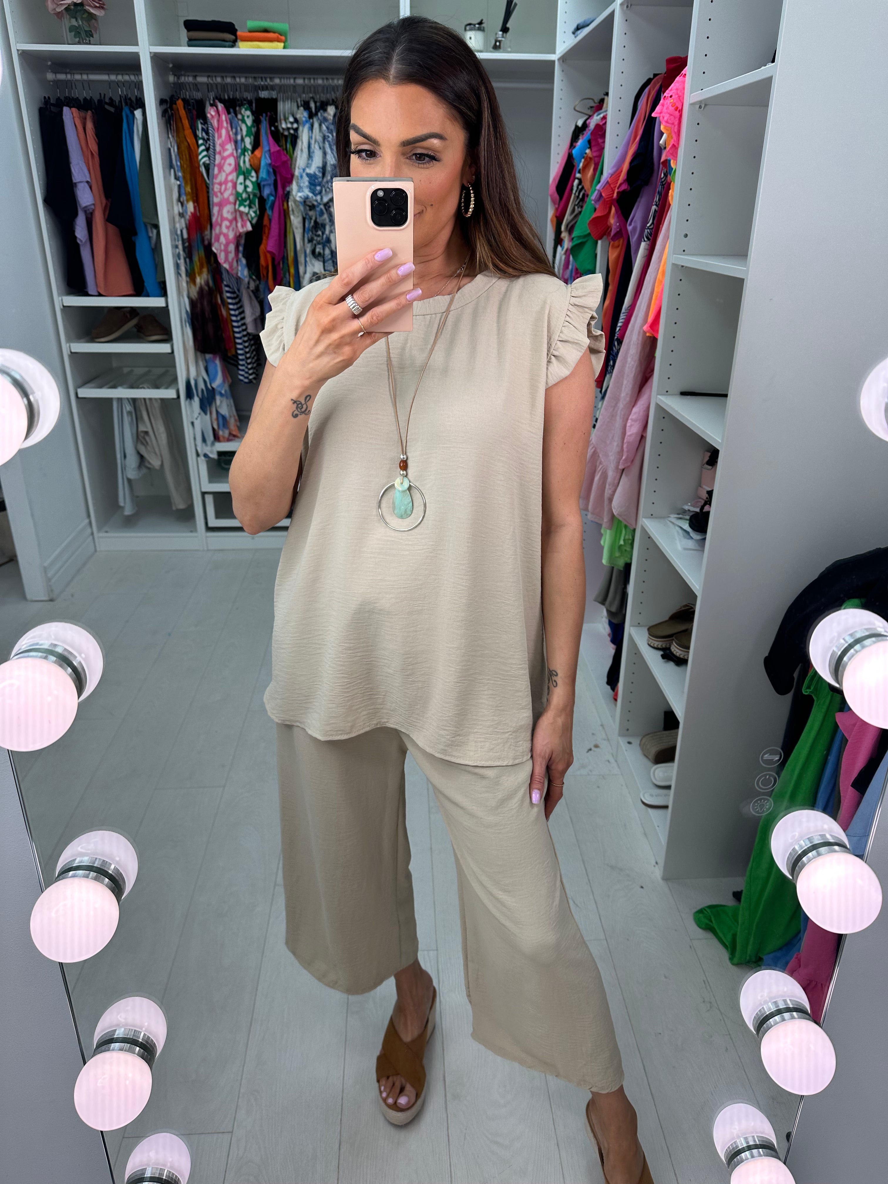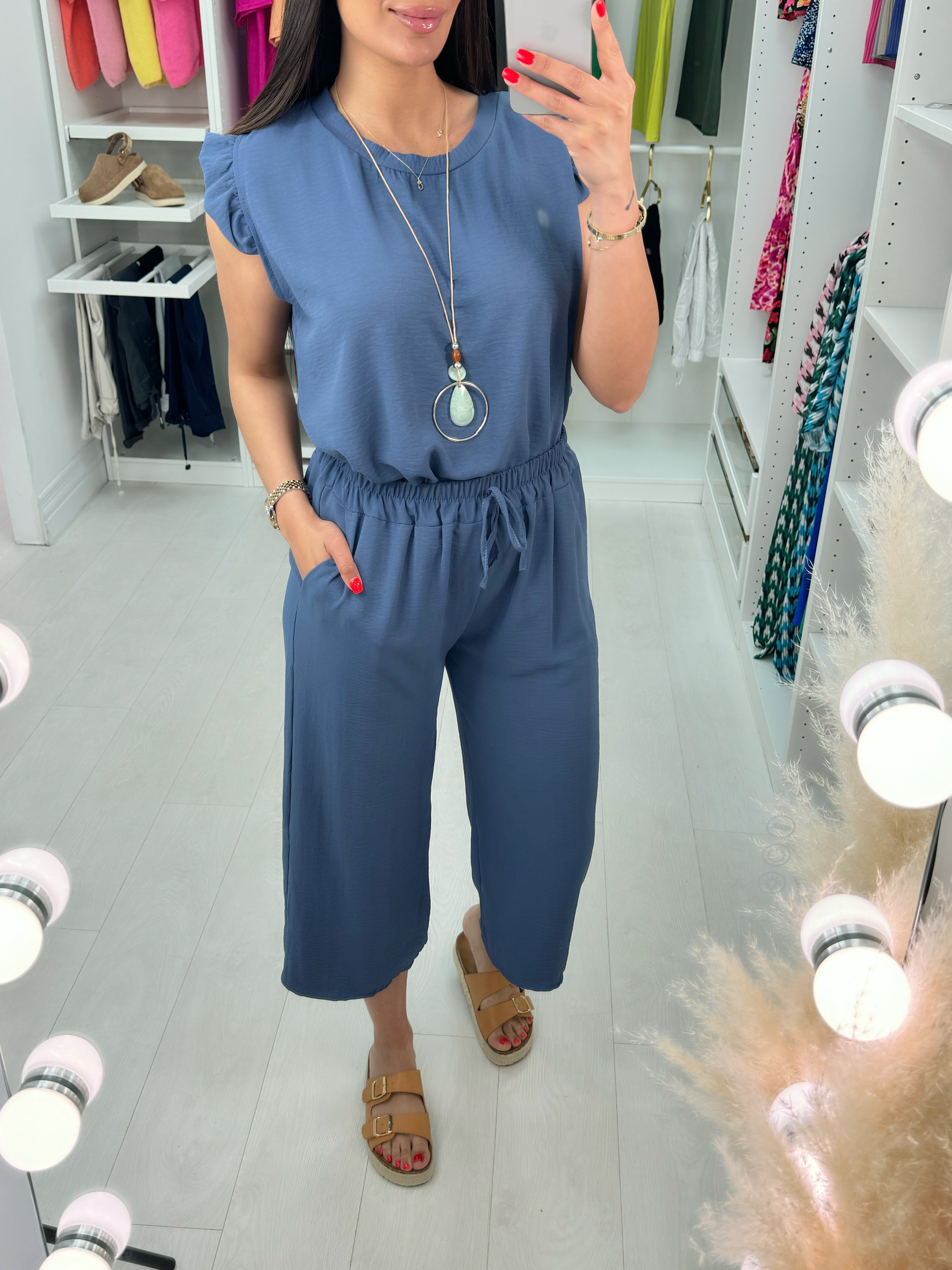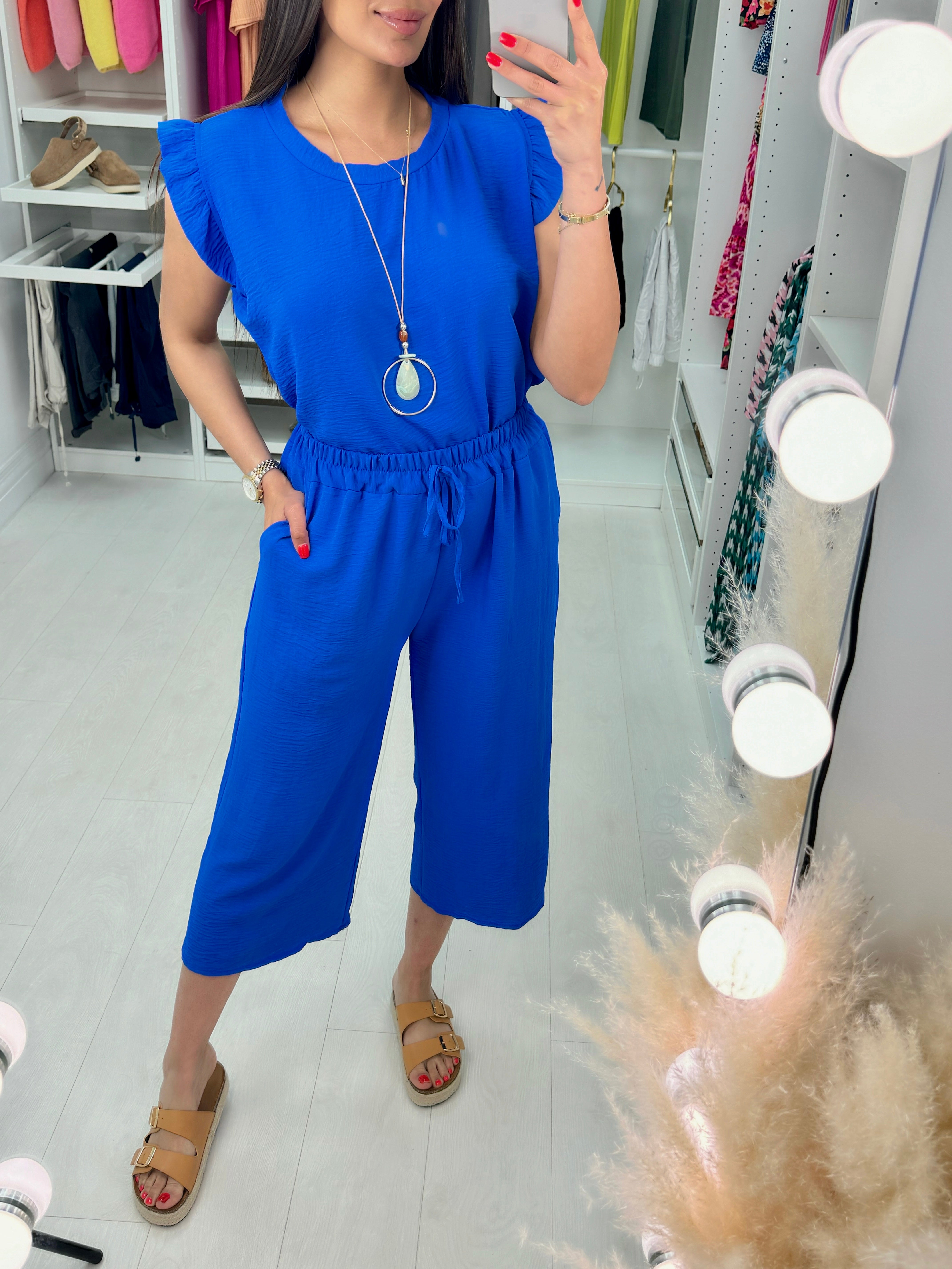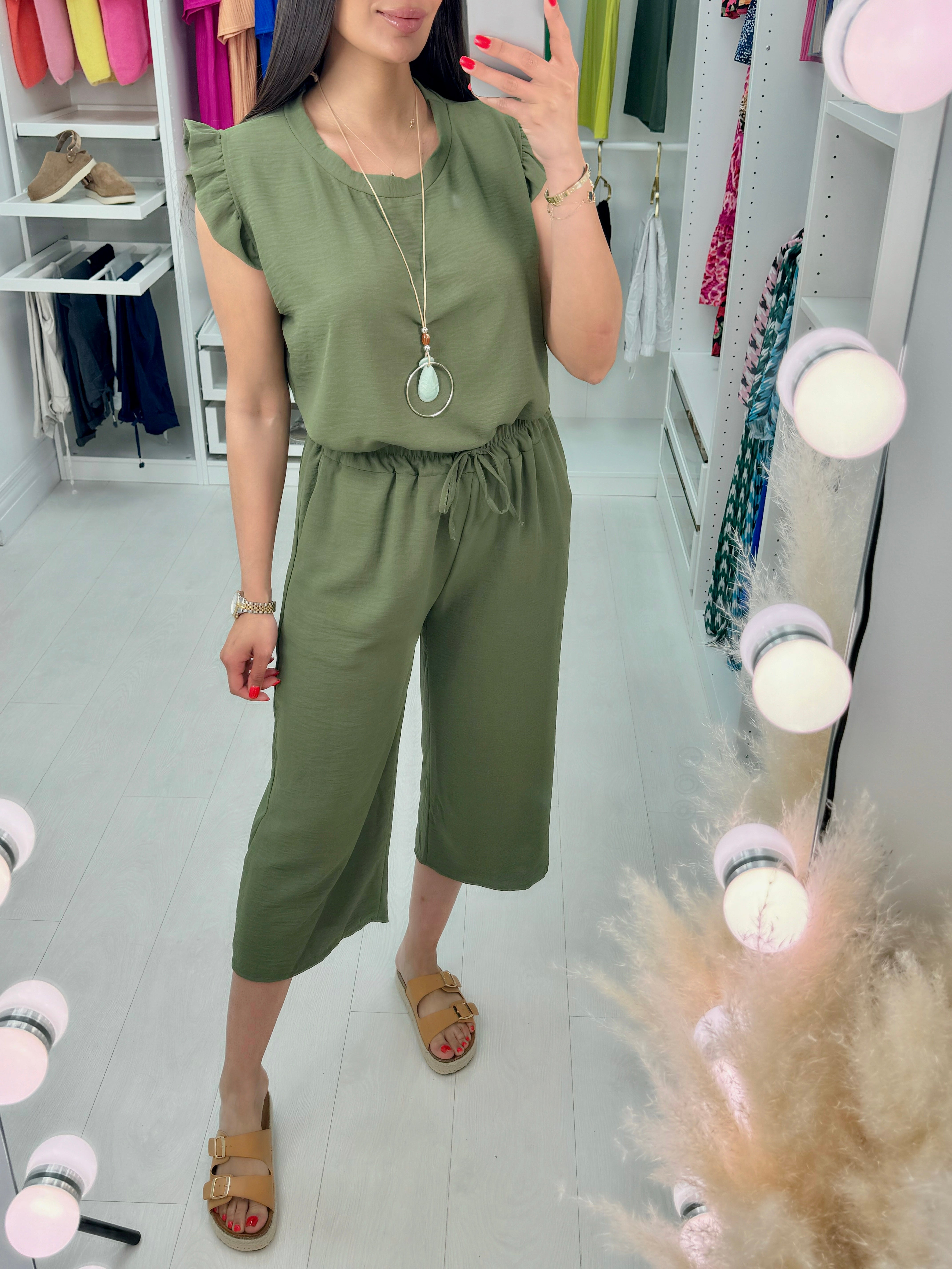 Fidelia Frill Detail Crepe Culotte Co-Ord Set
