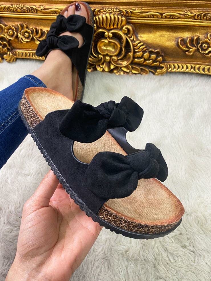Franklin Faux Suede Bow Strappy Sliders