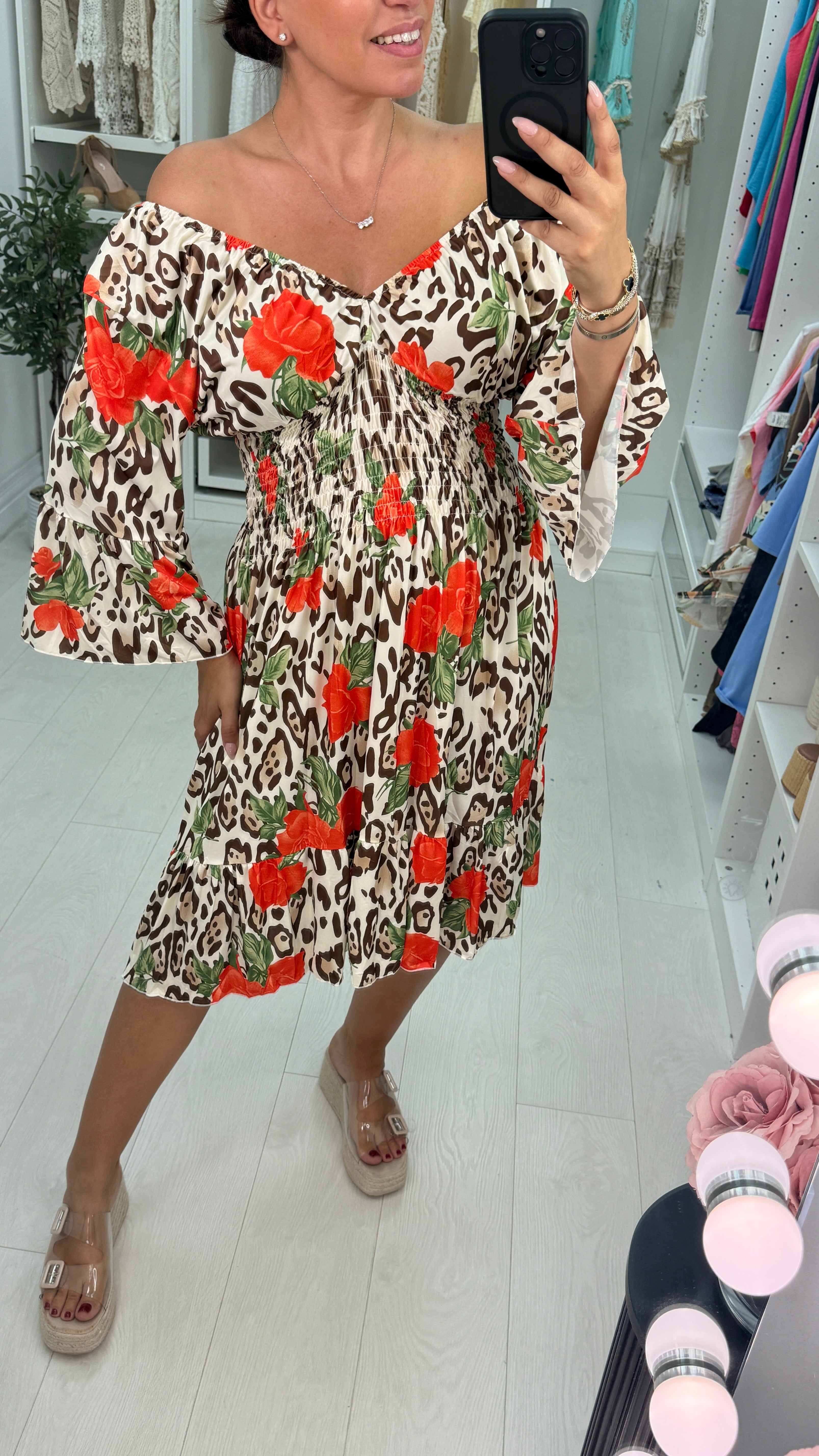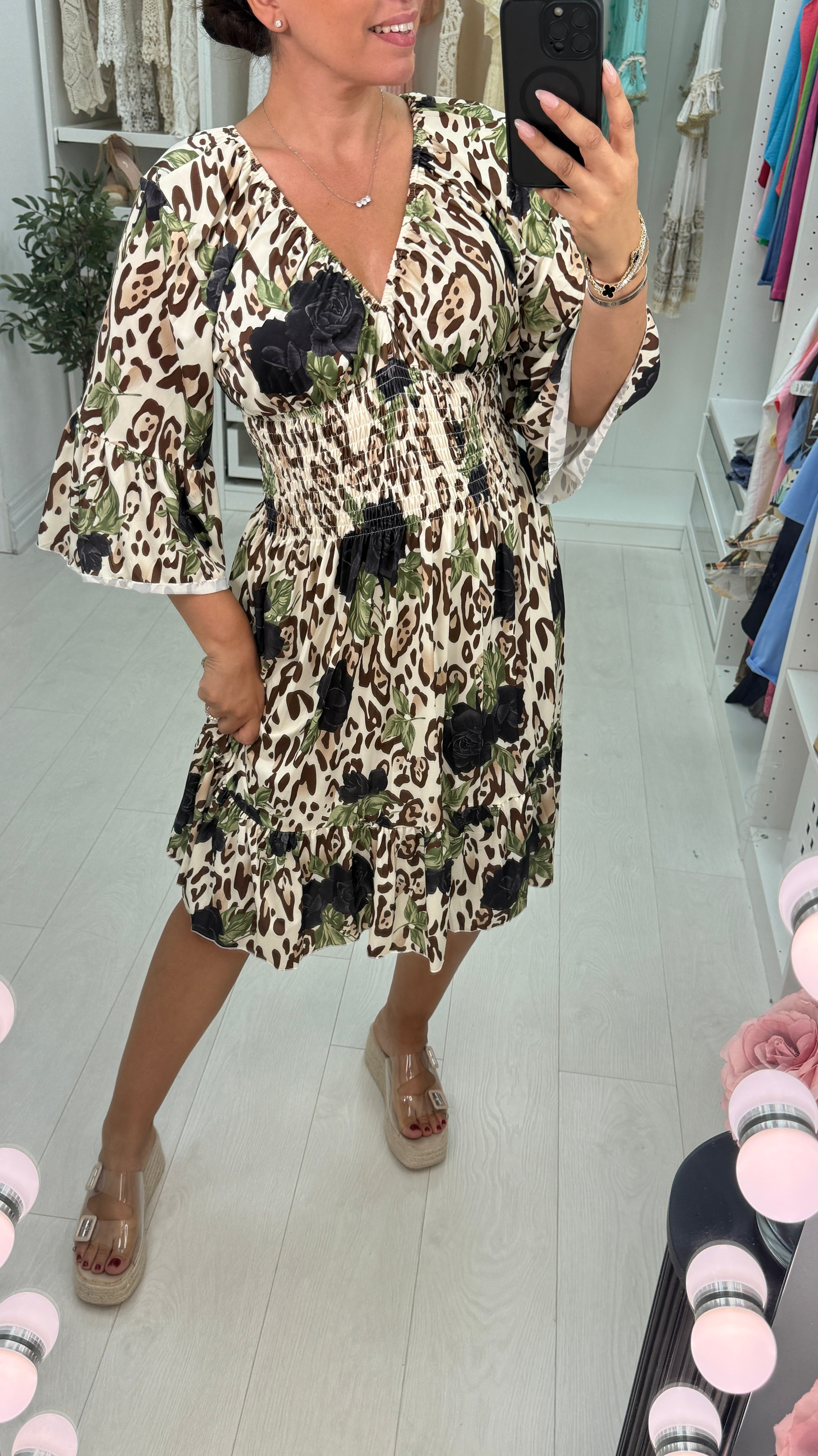 Hillary Leopard & Rose Print Magic Dress