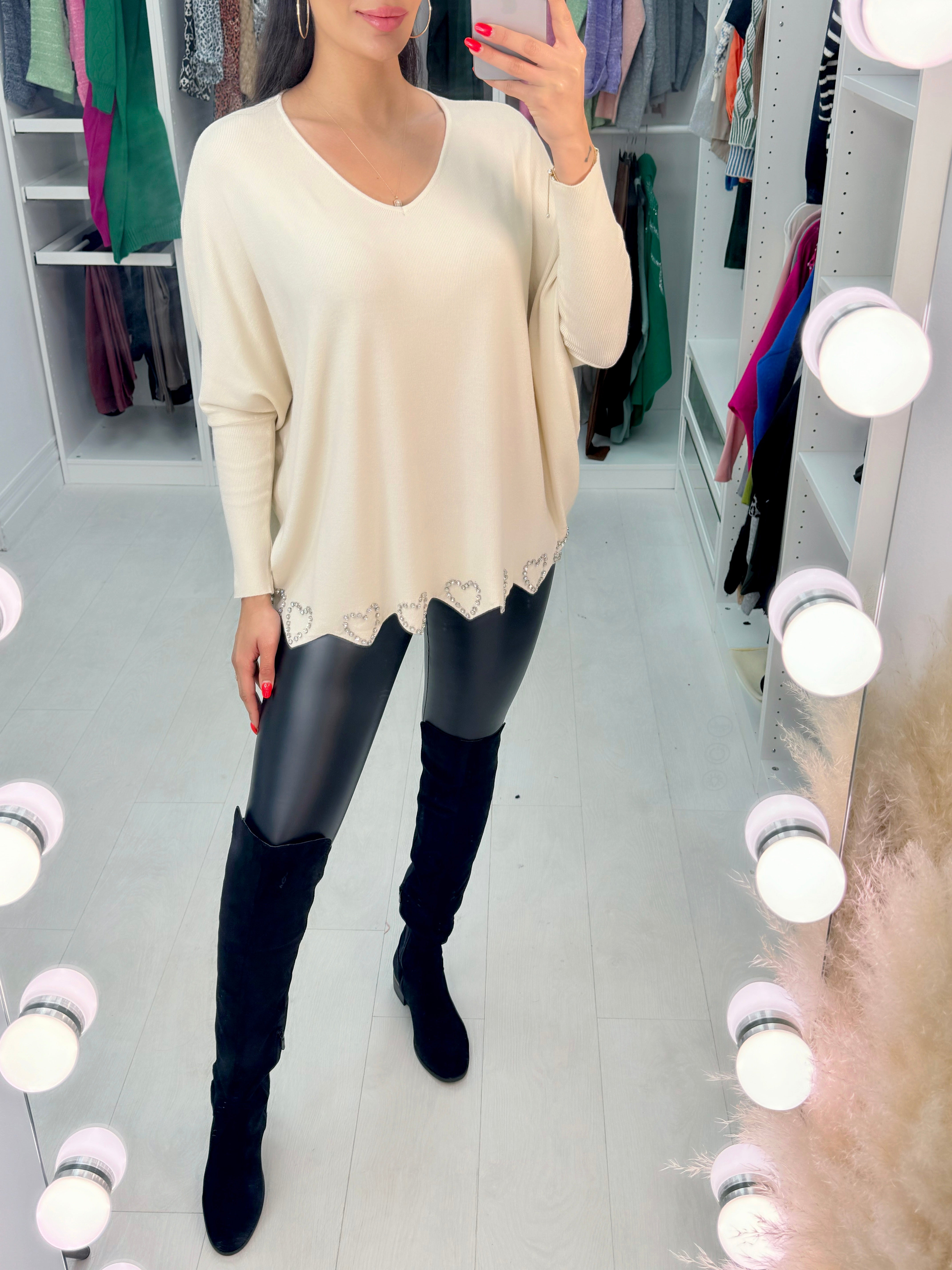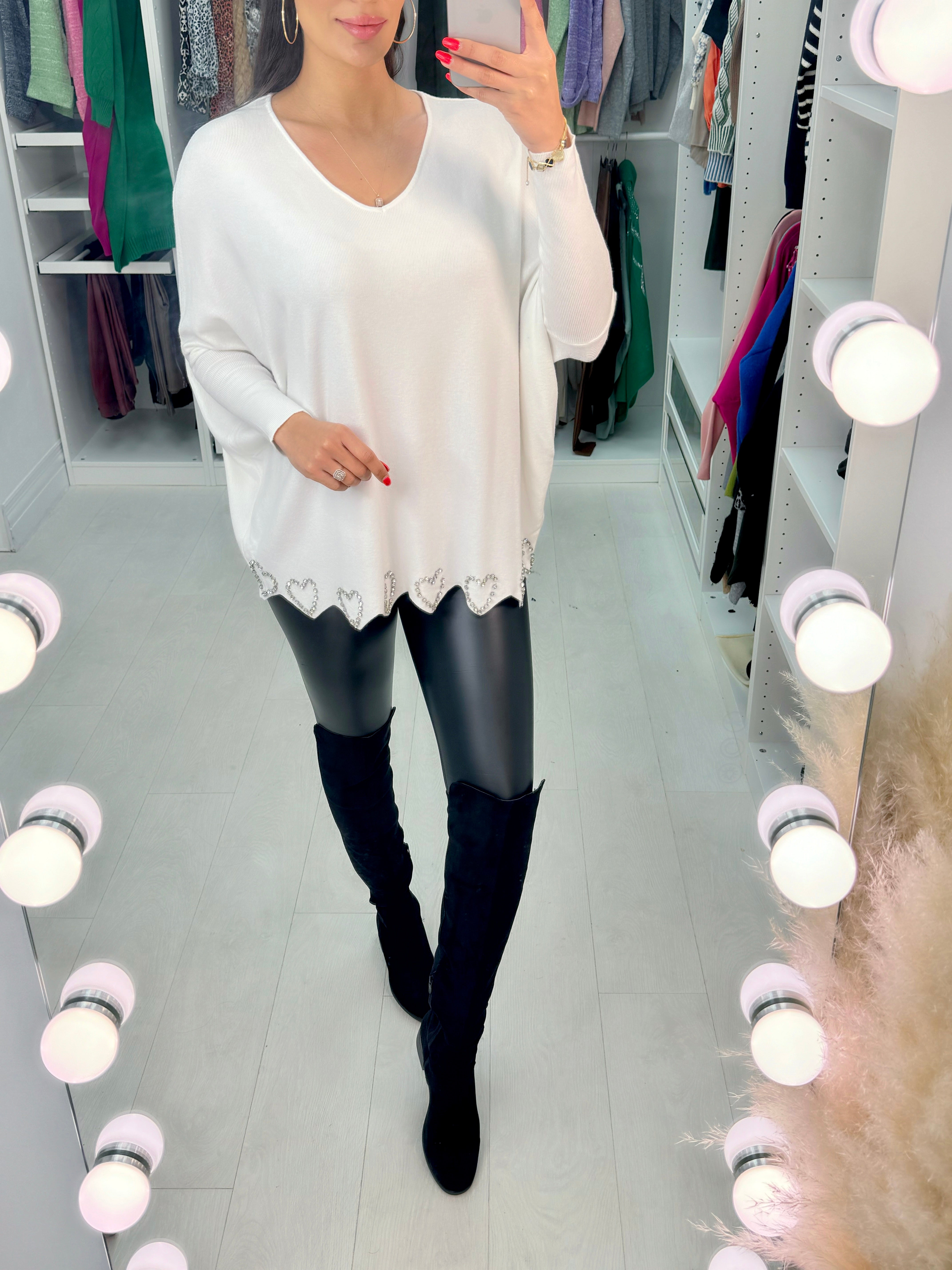 - Diamante Heart Detail Hem