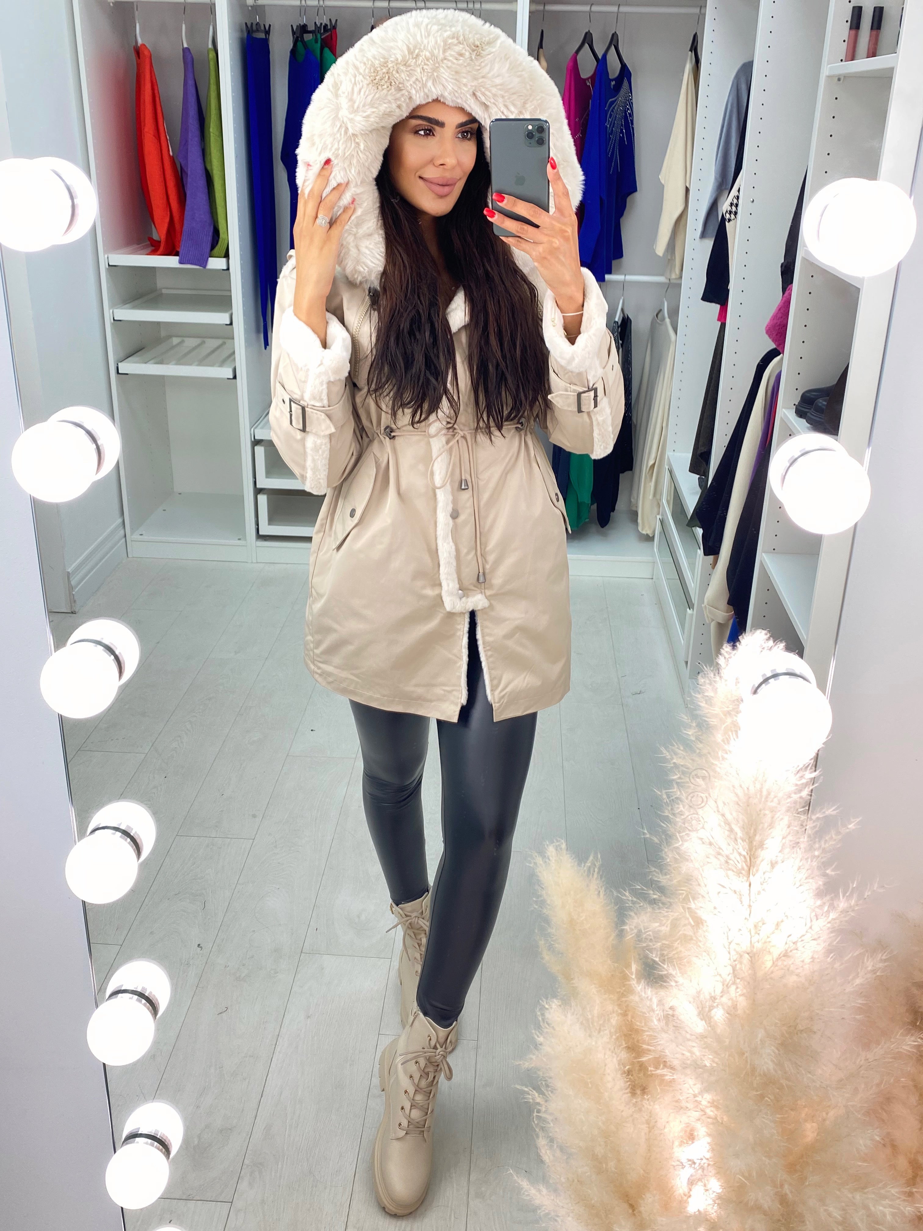 • Lush Faux Fur Trim on Hood and Cuffs