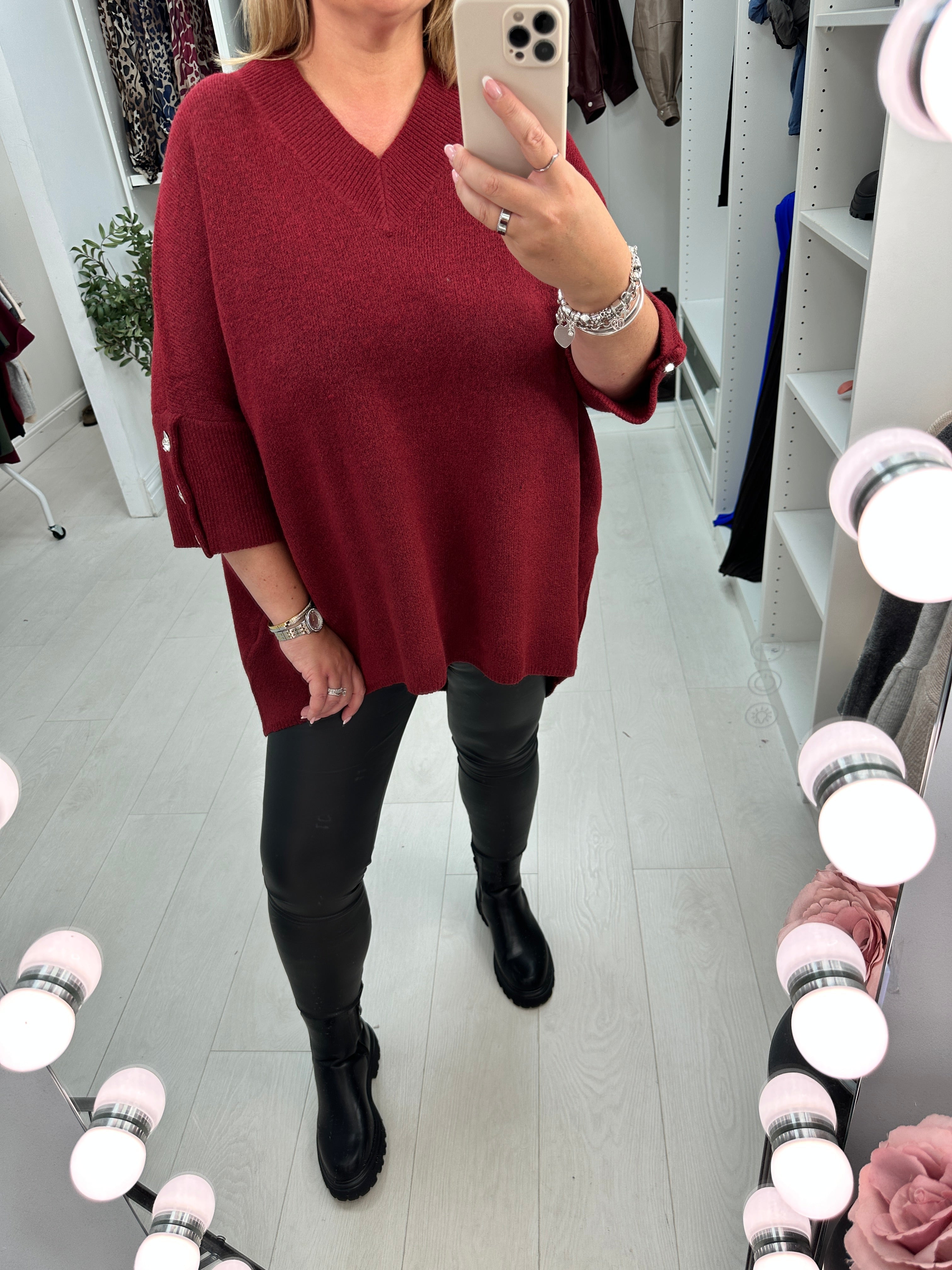 Experience ultimate comfort with the Lauretta Super Soft Button Detail Longline Jumper. Crafted from luxuriously soft fabric, it features a flattering ribbed V-neck and stylish button details on the 3/4 sleeves. The longline fit with a dipped hem adds a modern touch, making it perfect for layering or wearing on its own. Elevate your wardrobe with this versatile and cozy jumper designed to keep you comfortable and chic all day long.