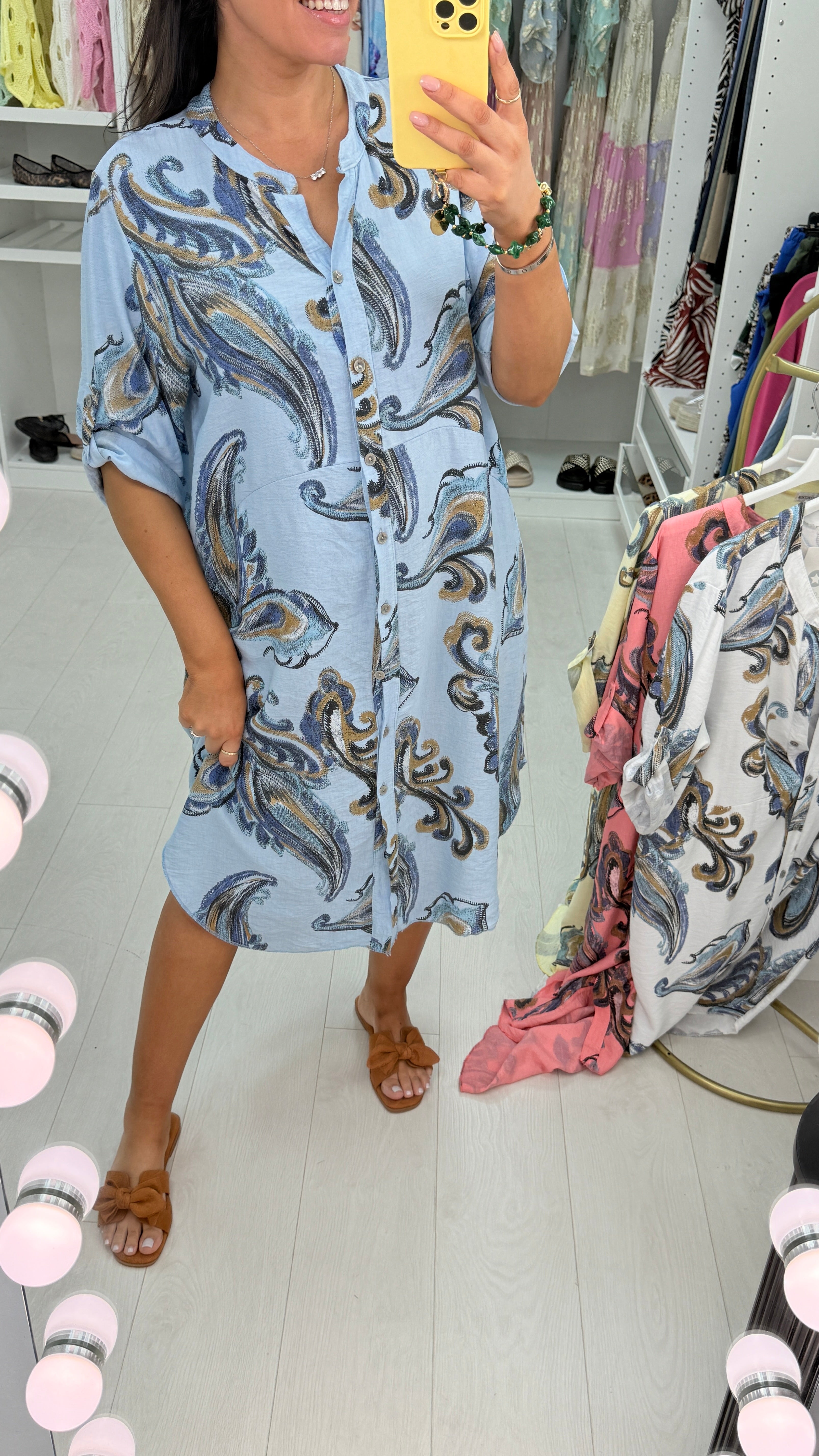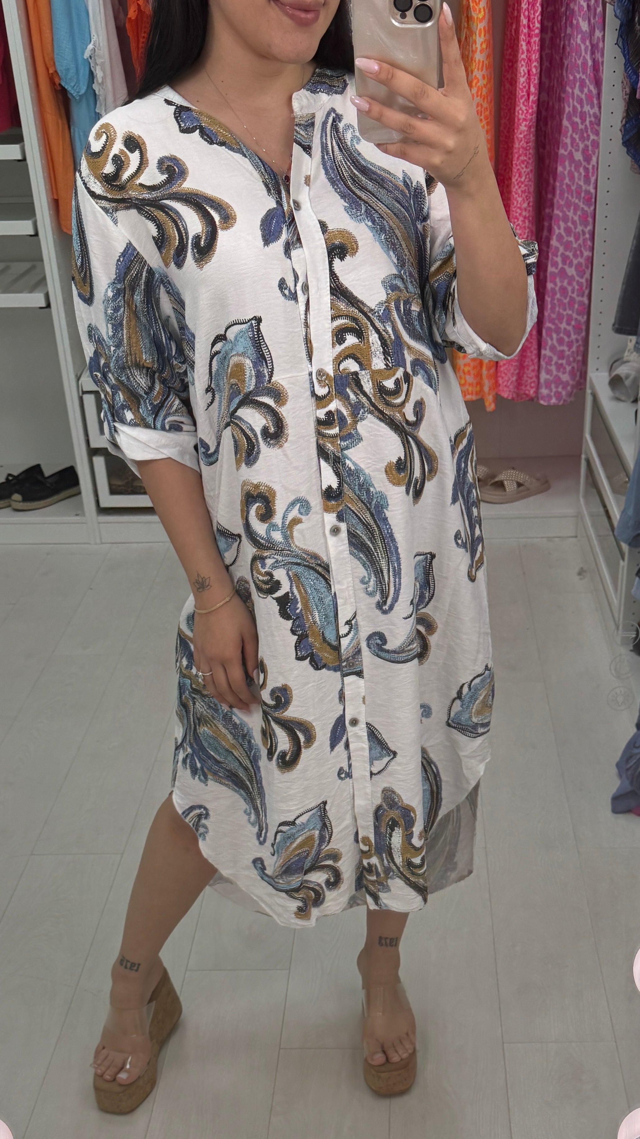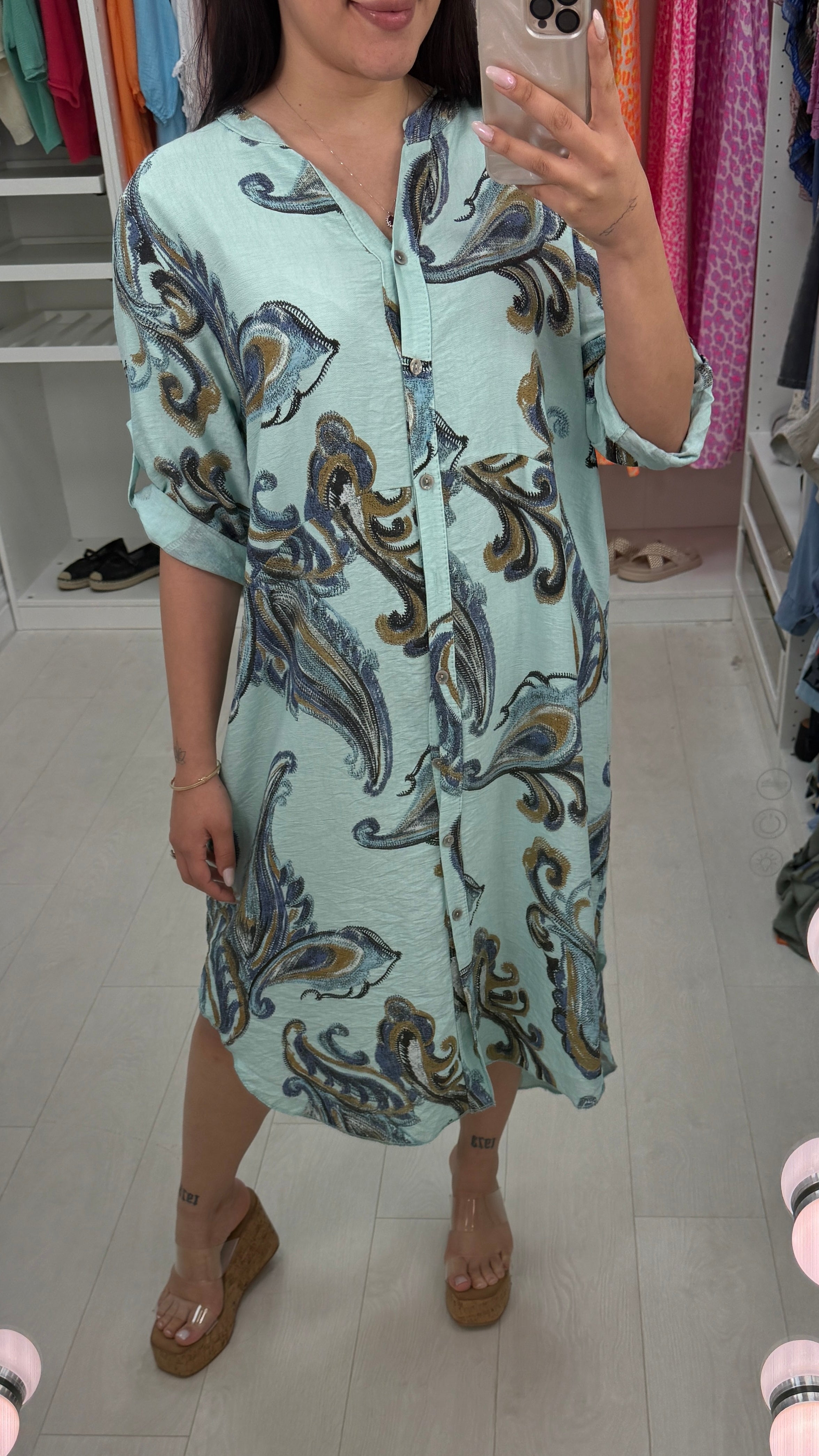 Lenette Paisley Print Loose Fit Button Front Dress