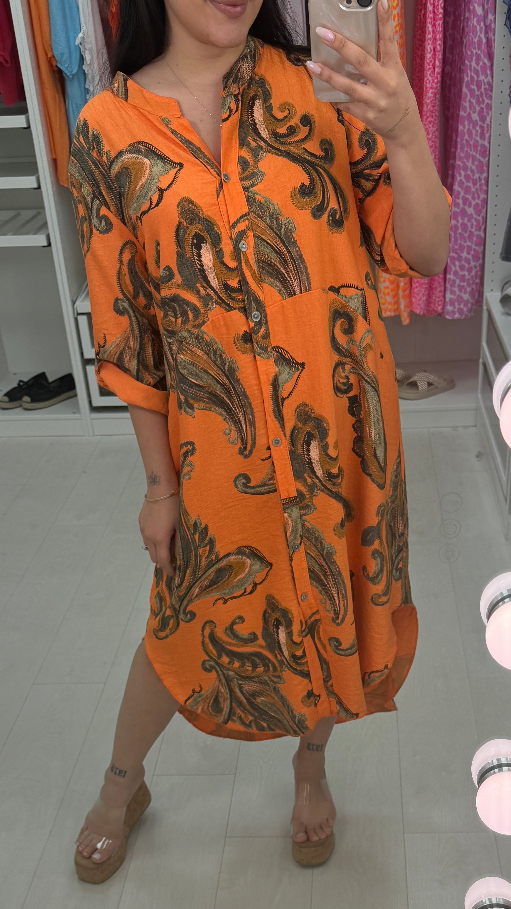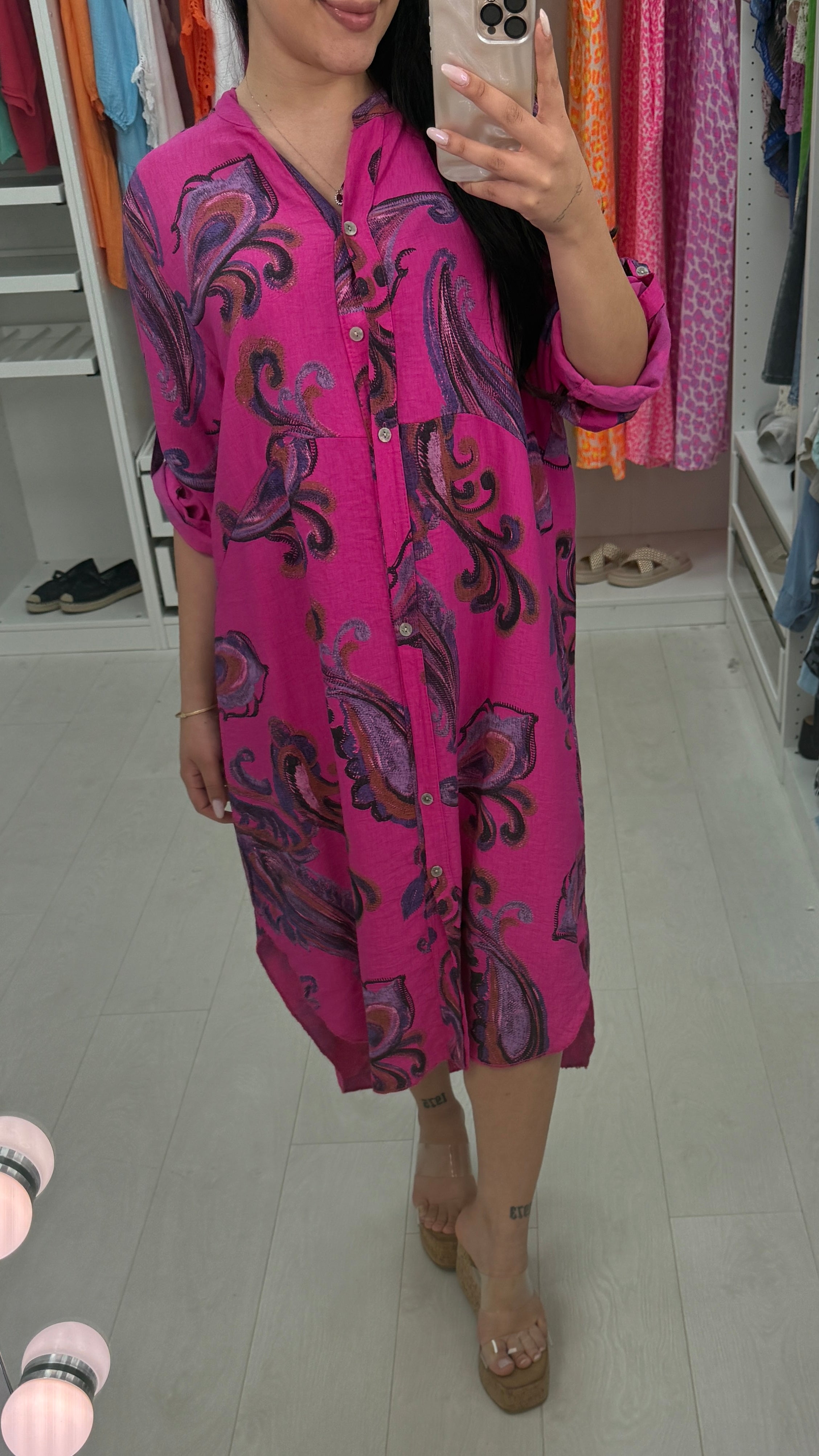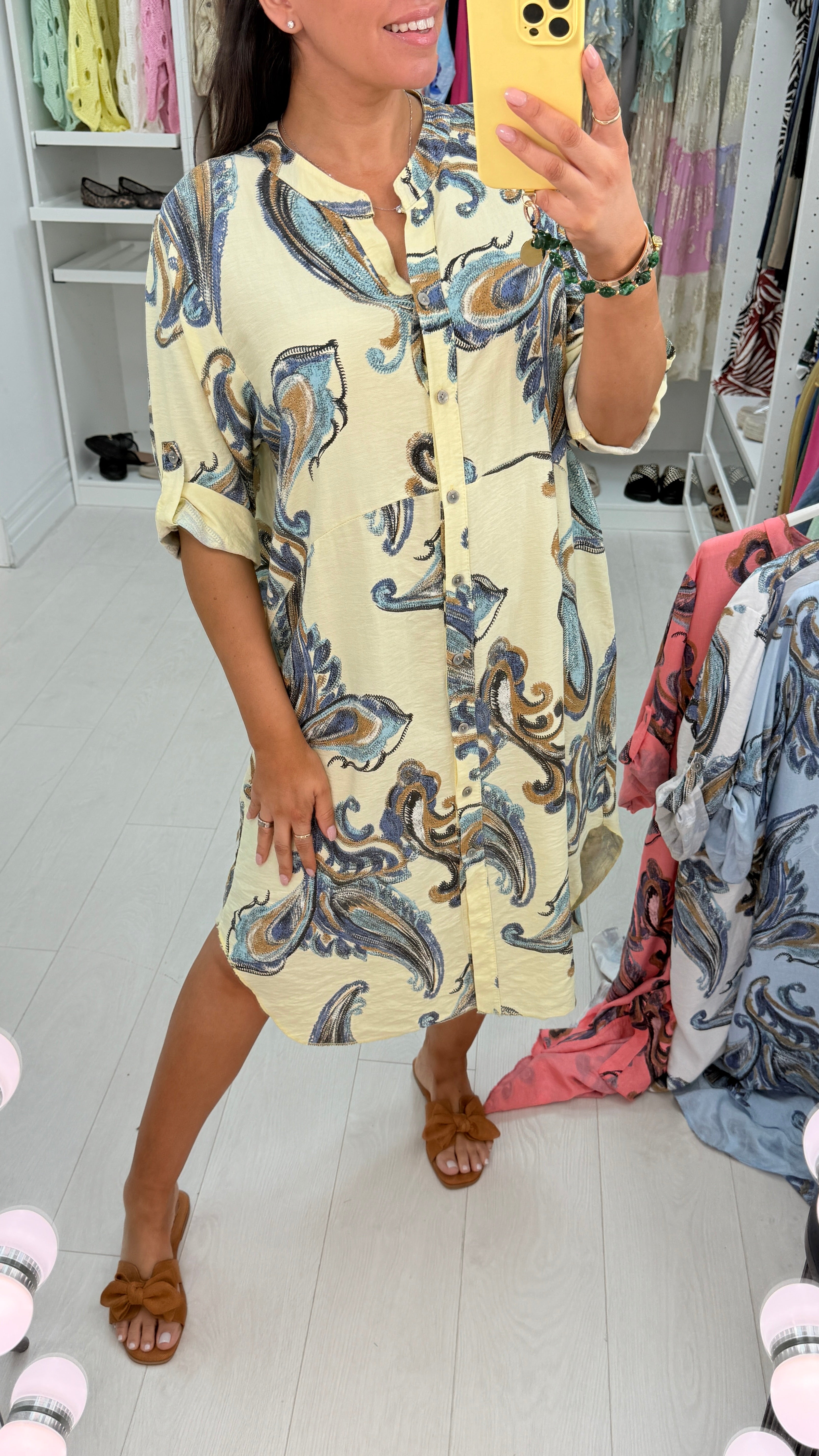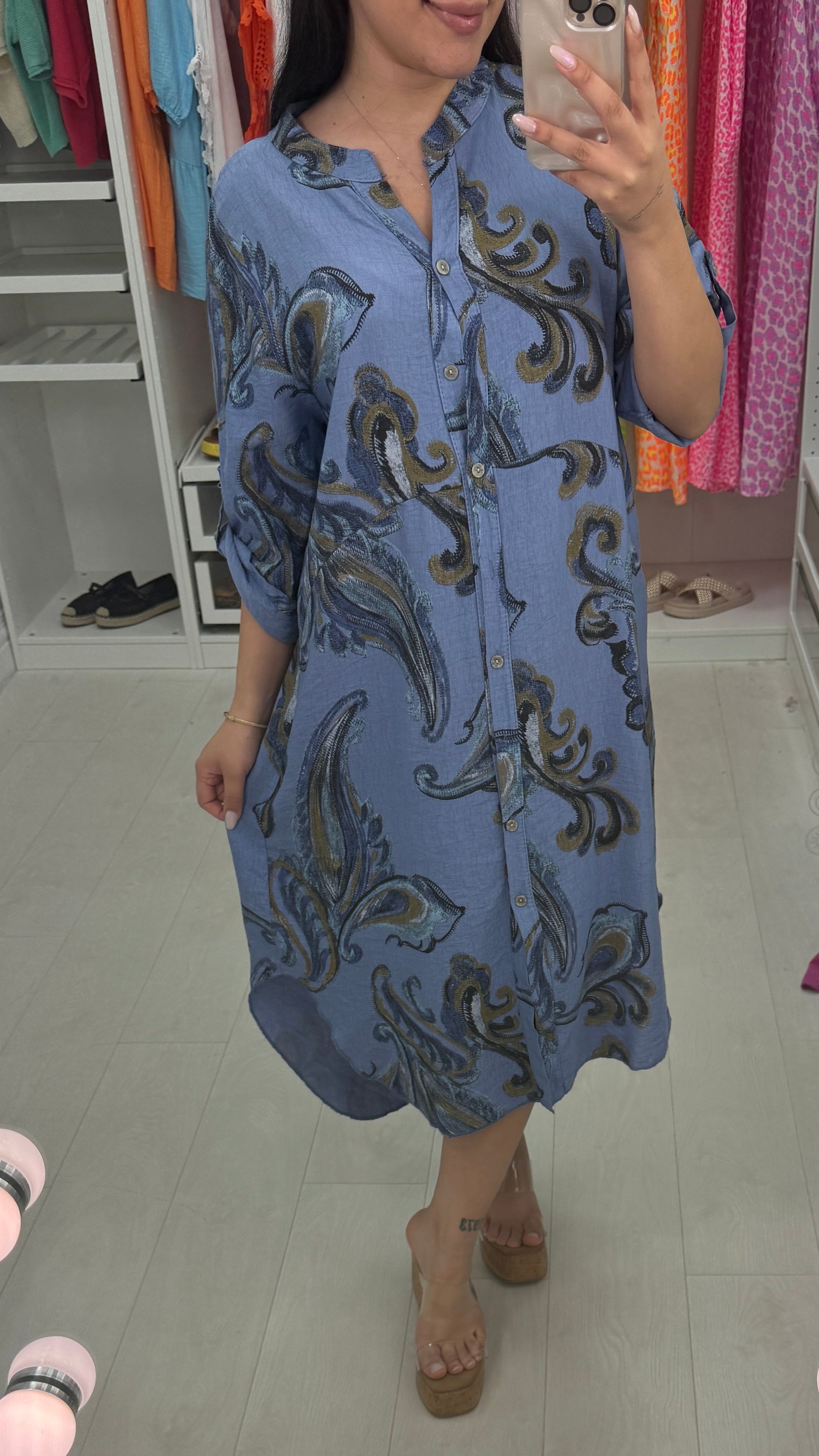 Lenette Paisley Print Loose Fit Button Front Dress