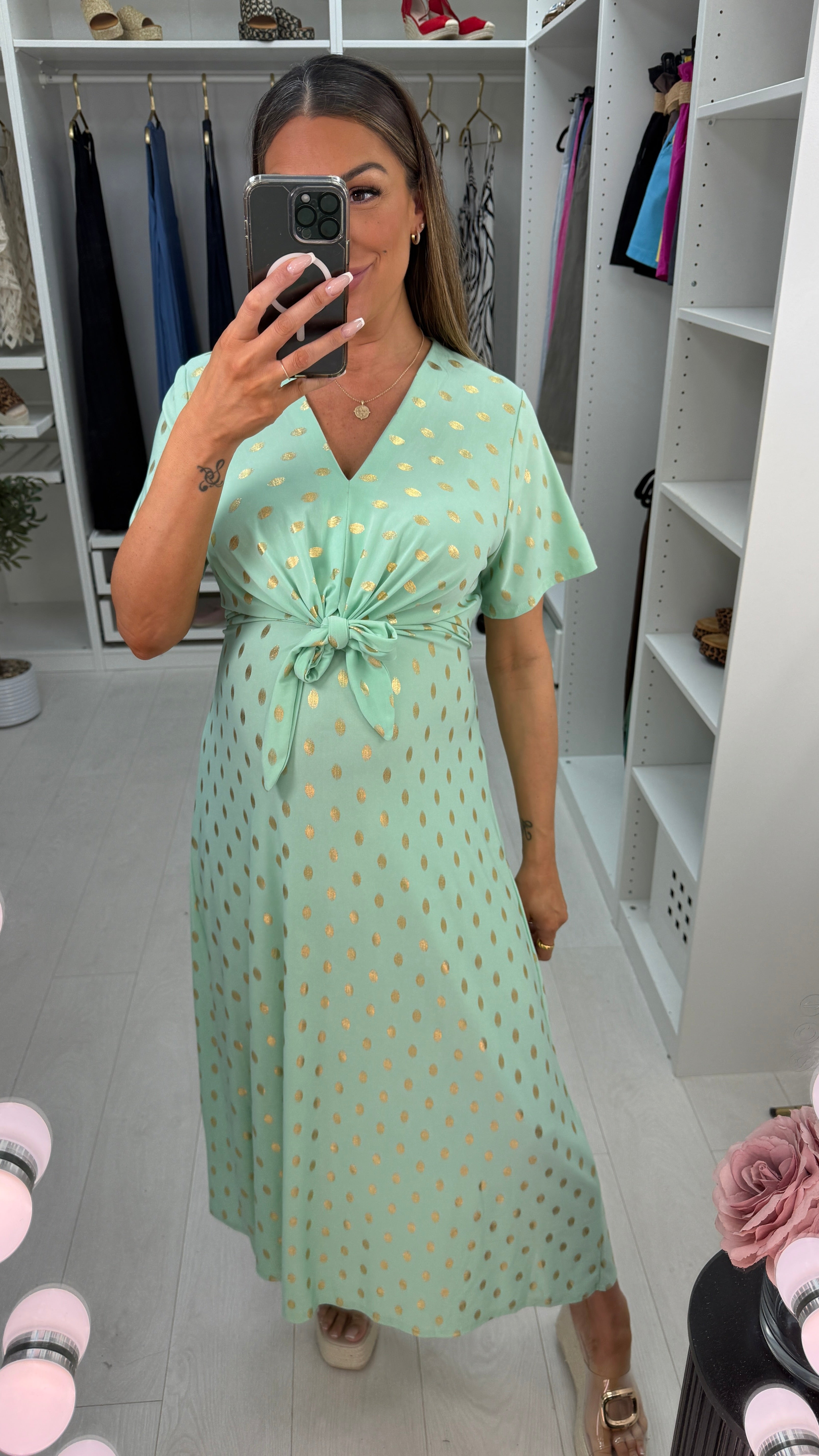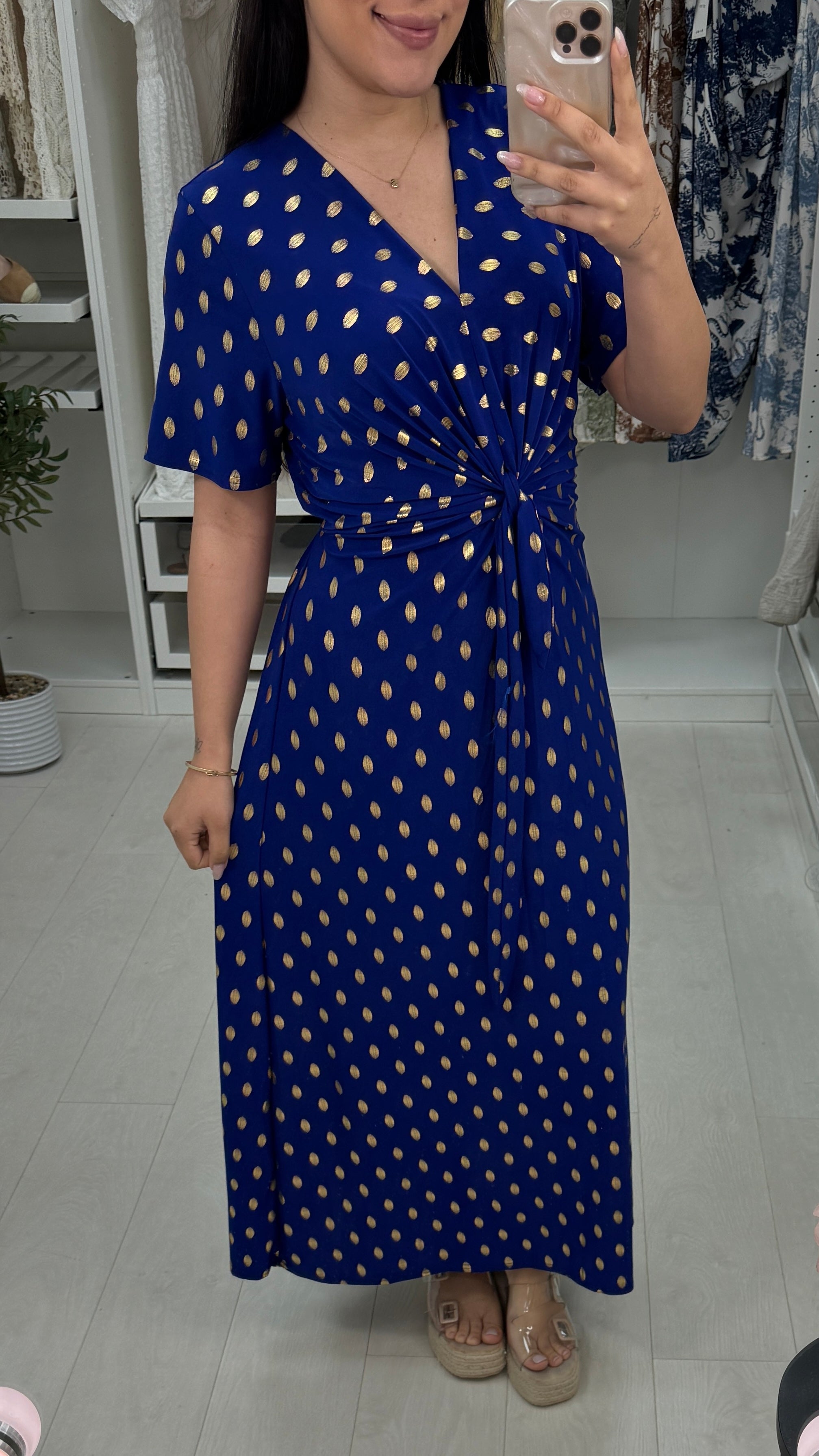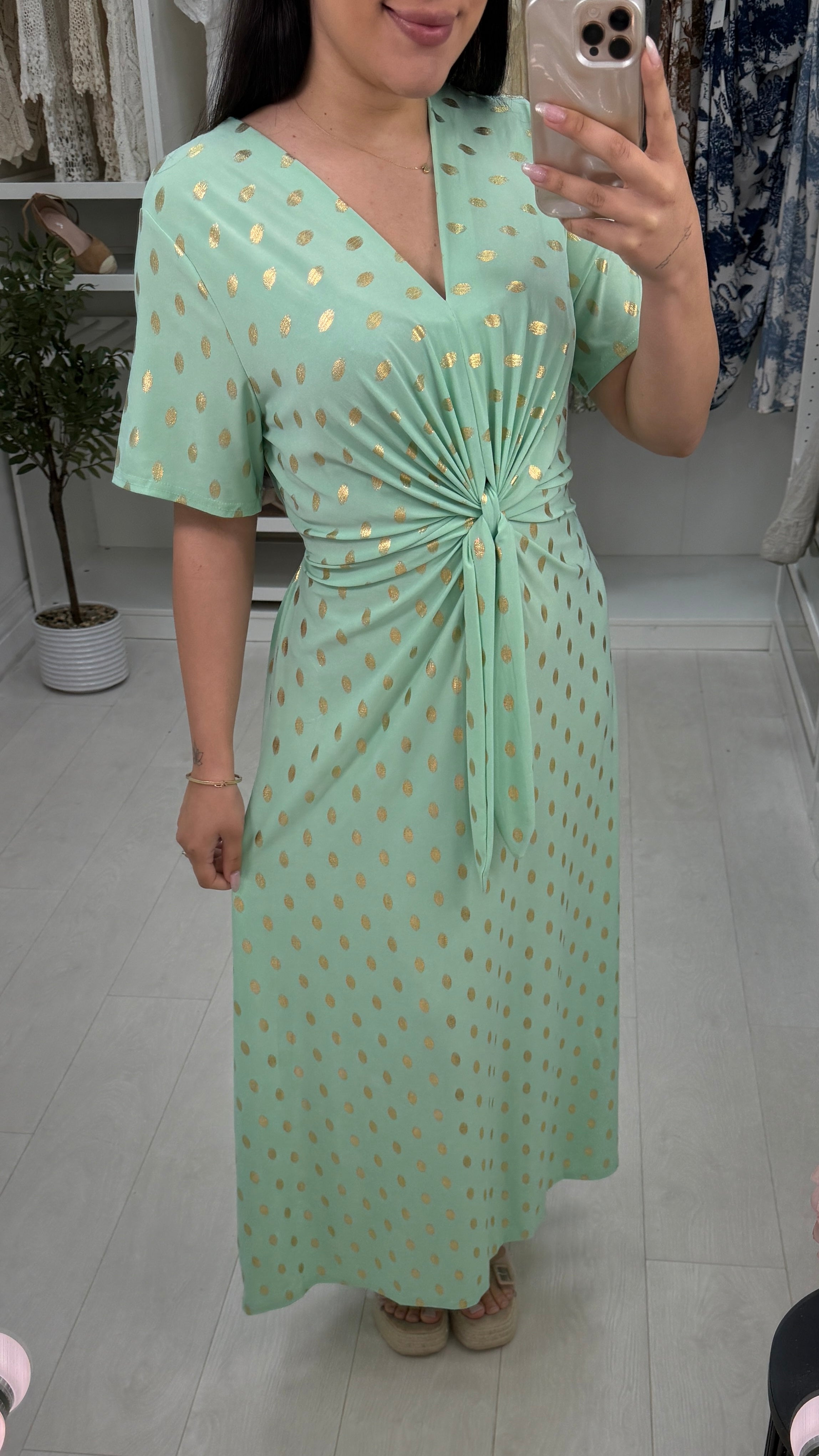 Michelle Gold Polka Print Maxi Dress
