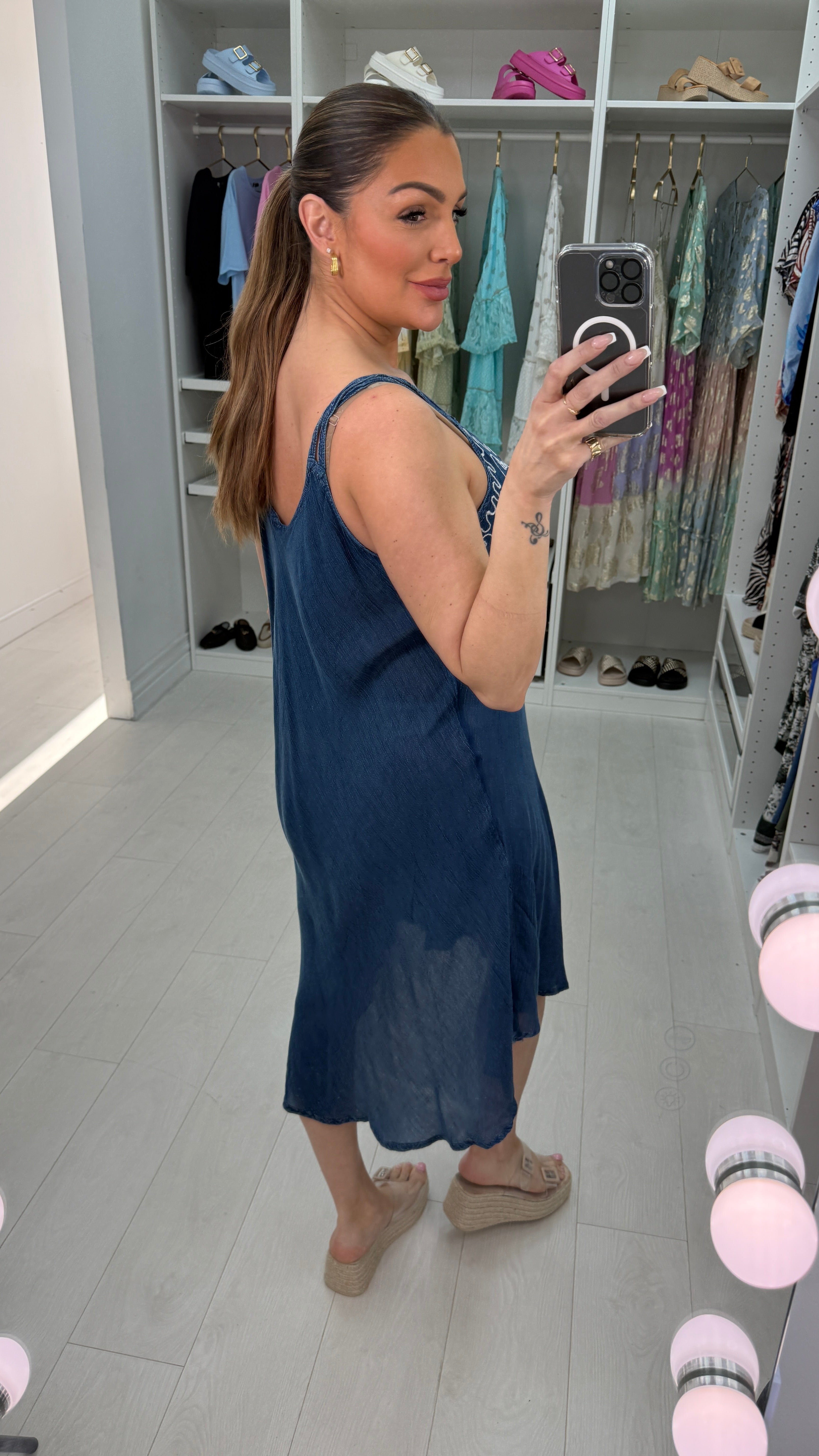 Nessa Embroidered Loose Fit Denim Dress