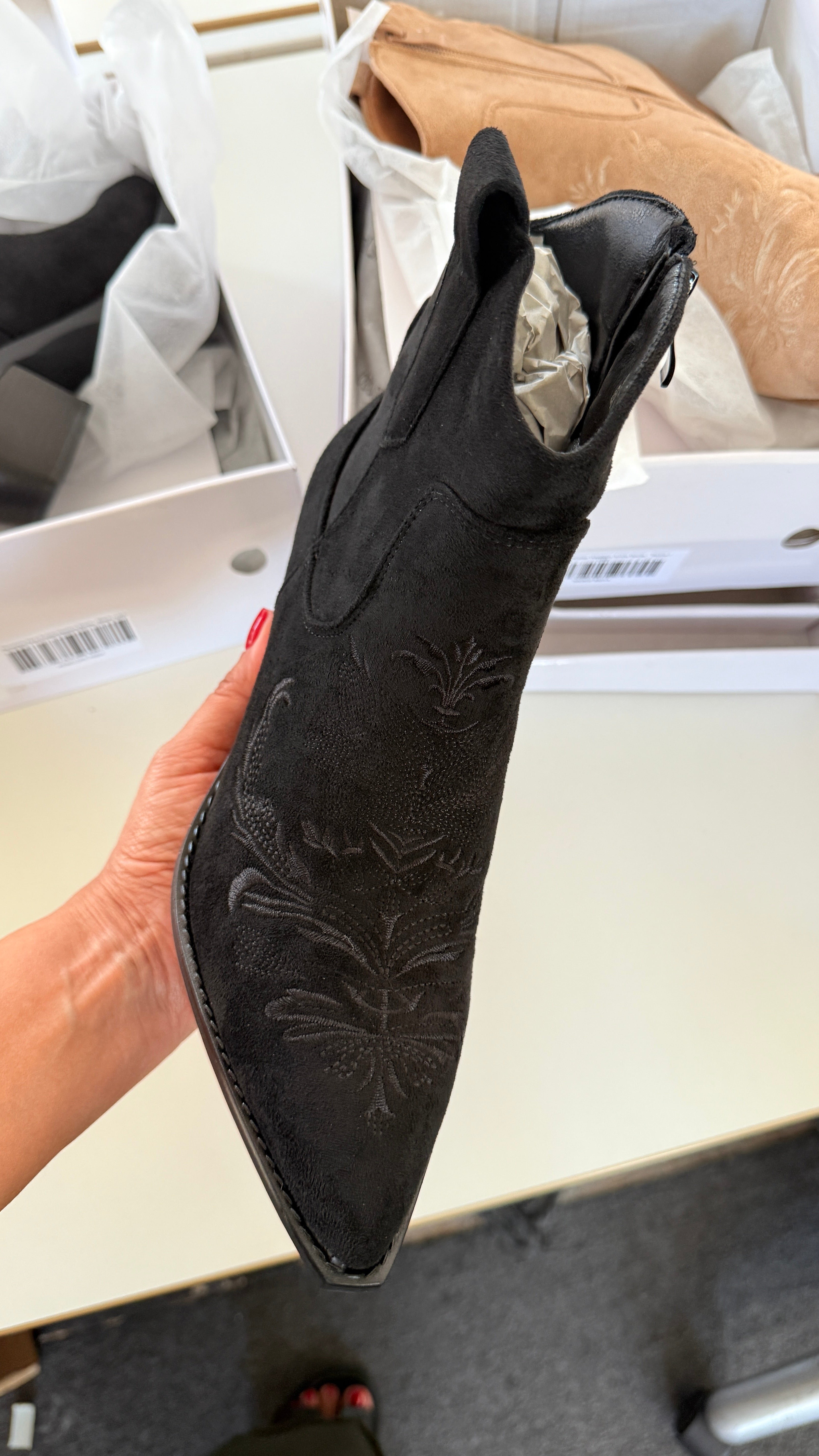 Nickie Faux Suede Western Ankle Boots