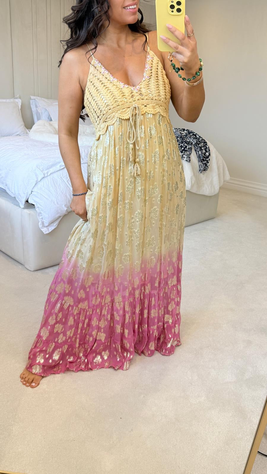 Oris Gold Detail Crochet Bust Maxi Dress
