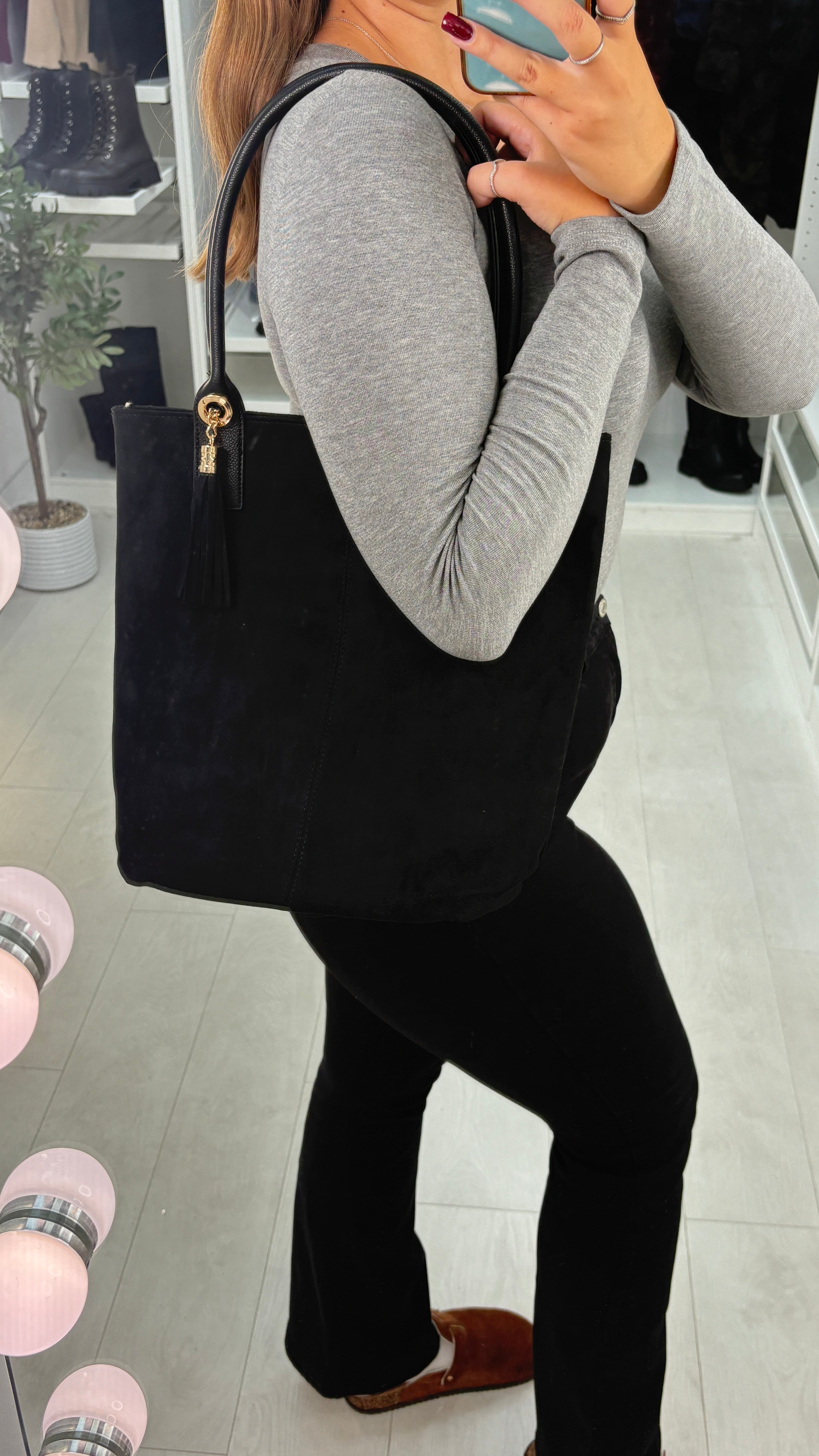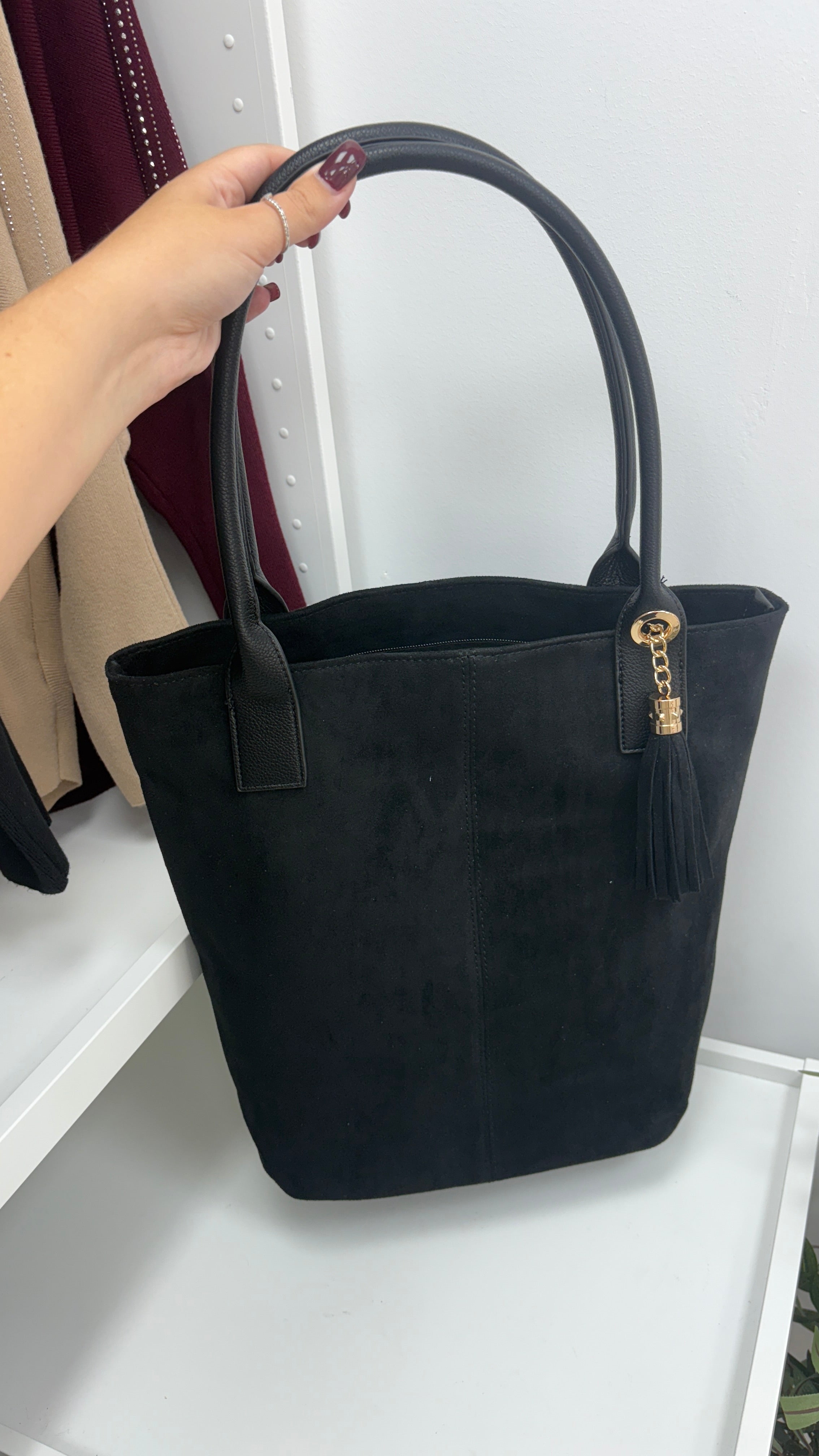Add a touch of playful charm to your look with the Ottie Faux Suede & Tassel Detail Bag. Crafted with a soft faux suede body and a sleek faux leather strap, this shoulder bag features a fun tassel detail and secure zip closure. Inside, find handy pockets plus a smaller bag perfect for your essentials — keeping everything stylishly organized wherever you go!
