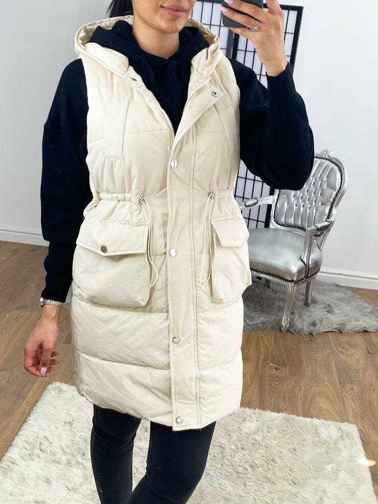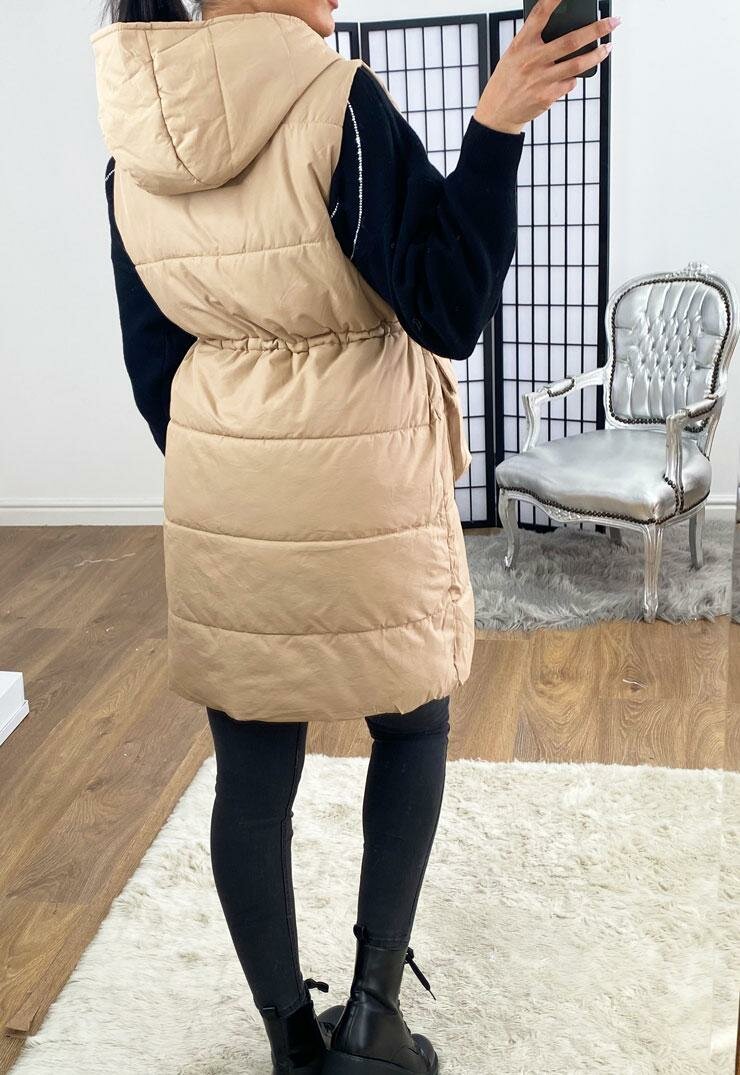 Rachel Padded Pocket Detailed Hooded Long Gilet