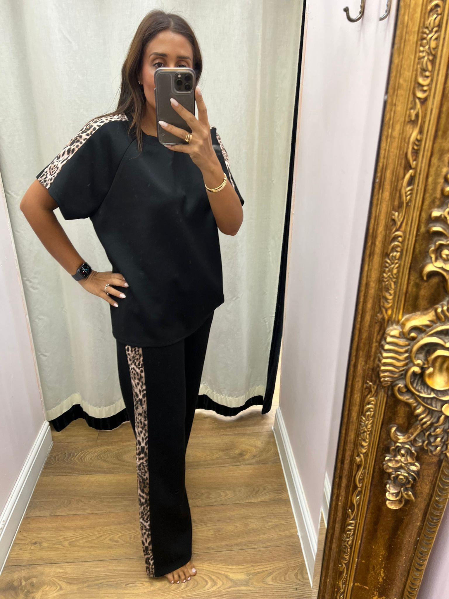 Adalina Leopard Detailed Short Sleeve Loungewear Set