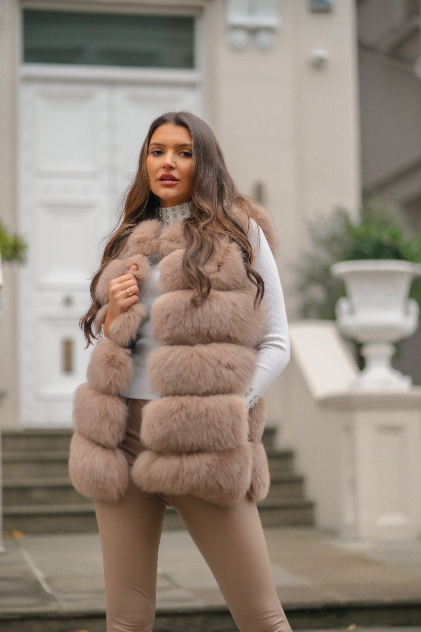 Tan Luxury Fur 6 Row Gilet