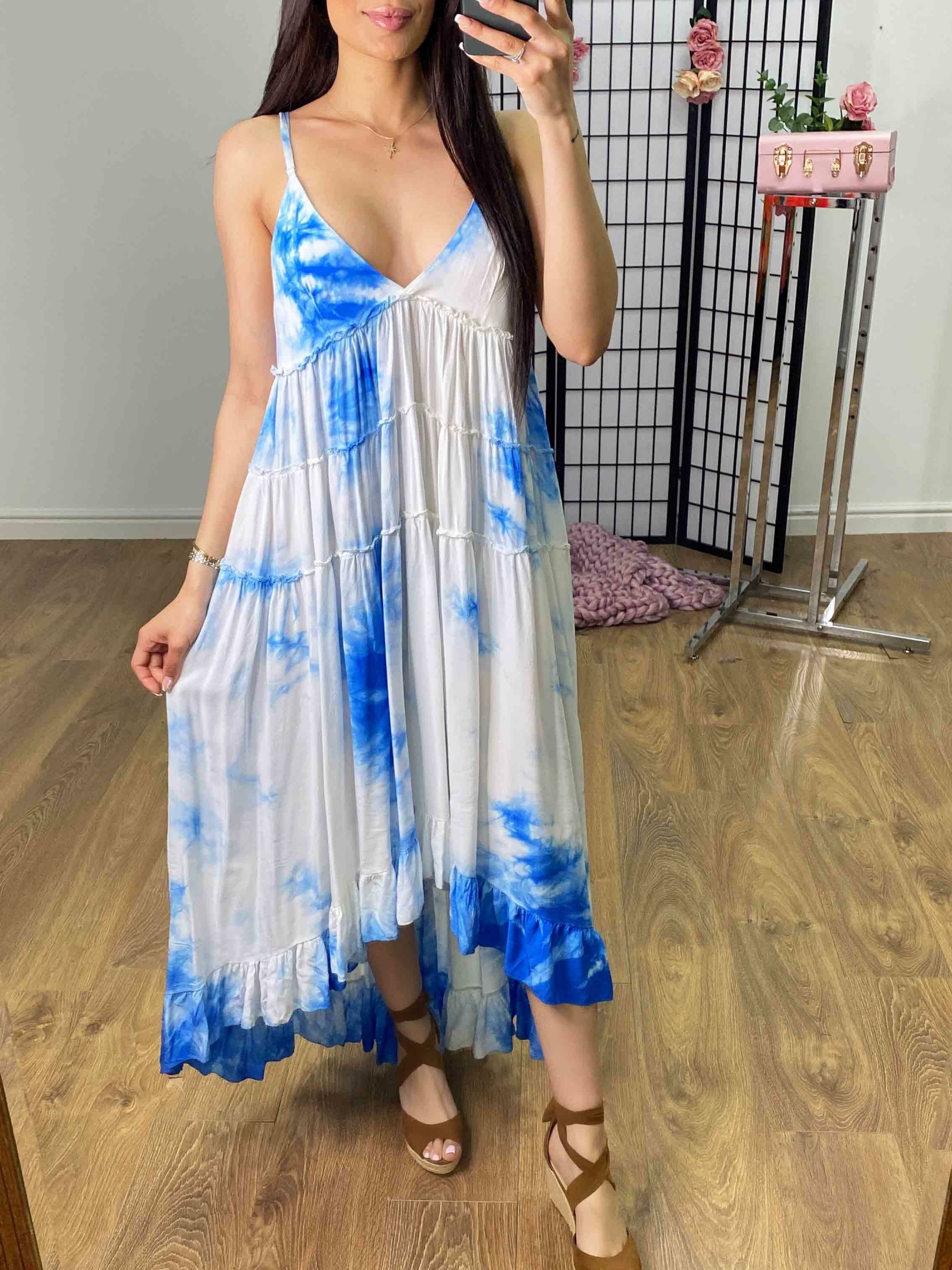 Yeliz Tie Dye Ruffle Dipped Hem Dress