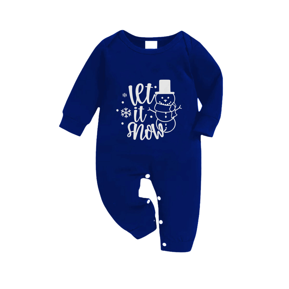 Christmas Family Matching Pajamas-Navy & White Plaid Pjs Set with Snowman and "Let It Snow" Text Print