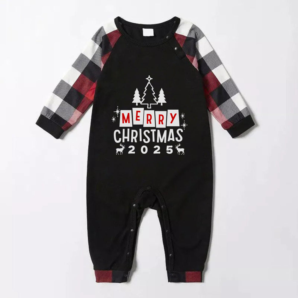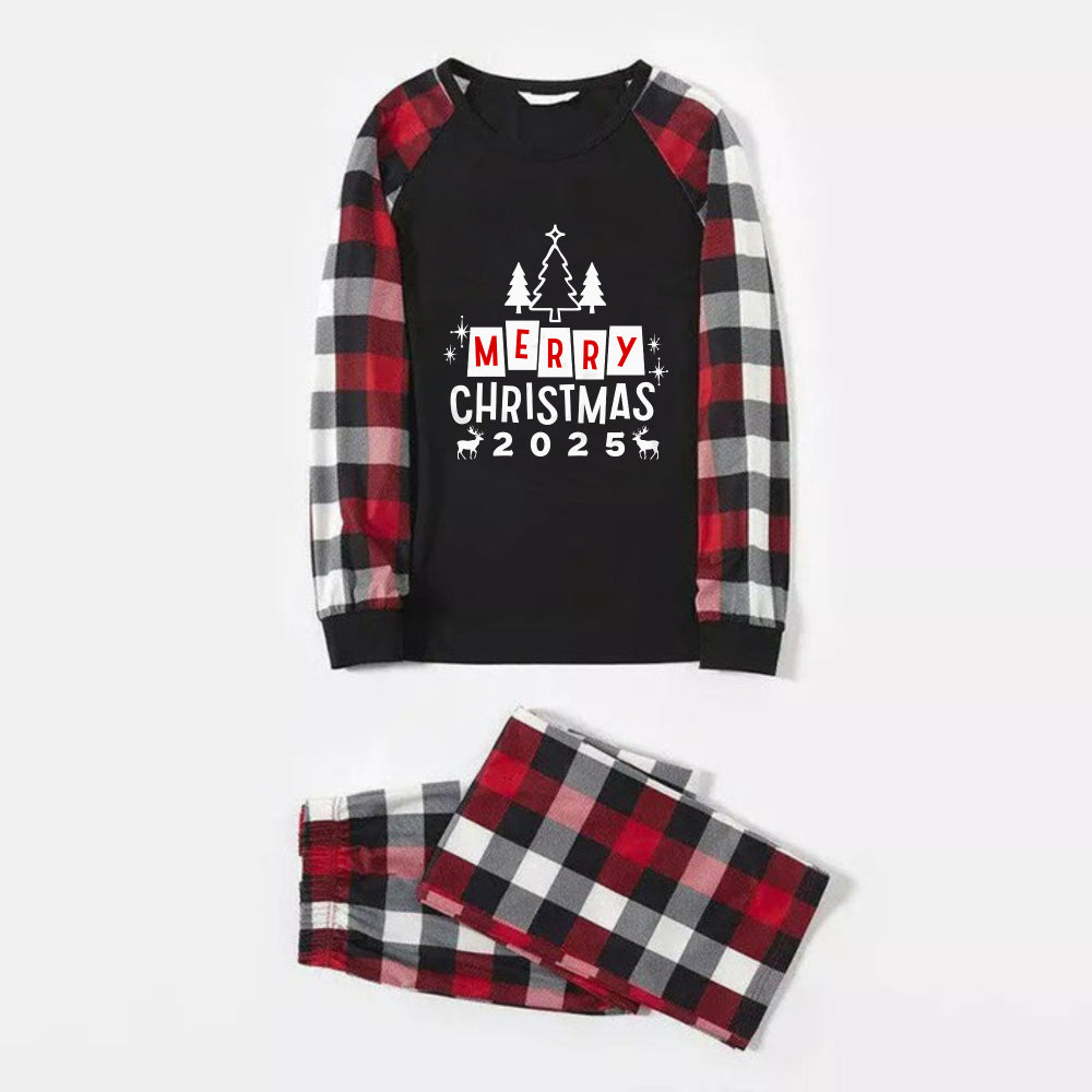 Christmas Family Matching Pajamas-Red and Gray Plaid Pjs set with “Merry Christmas” Print