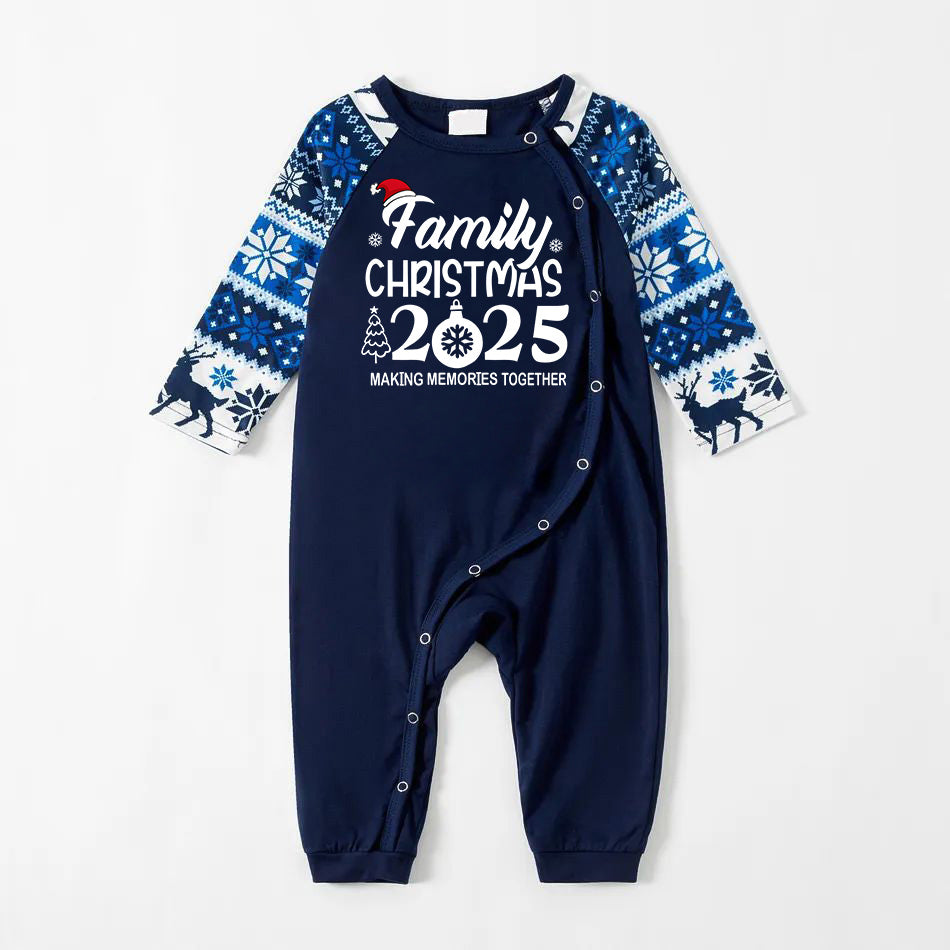 "Family Christmas 2025 " Text Print Blue Family Matching Pajamas