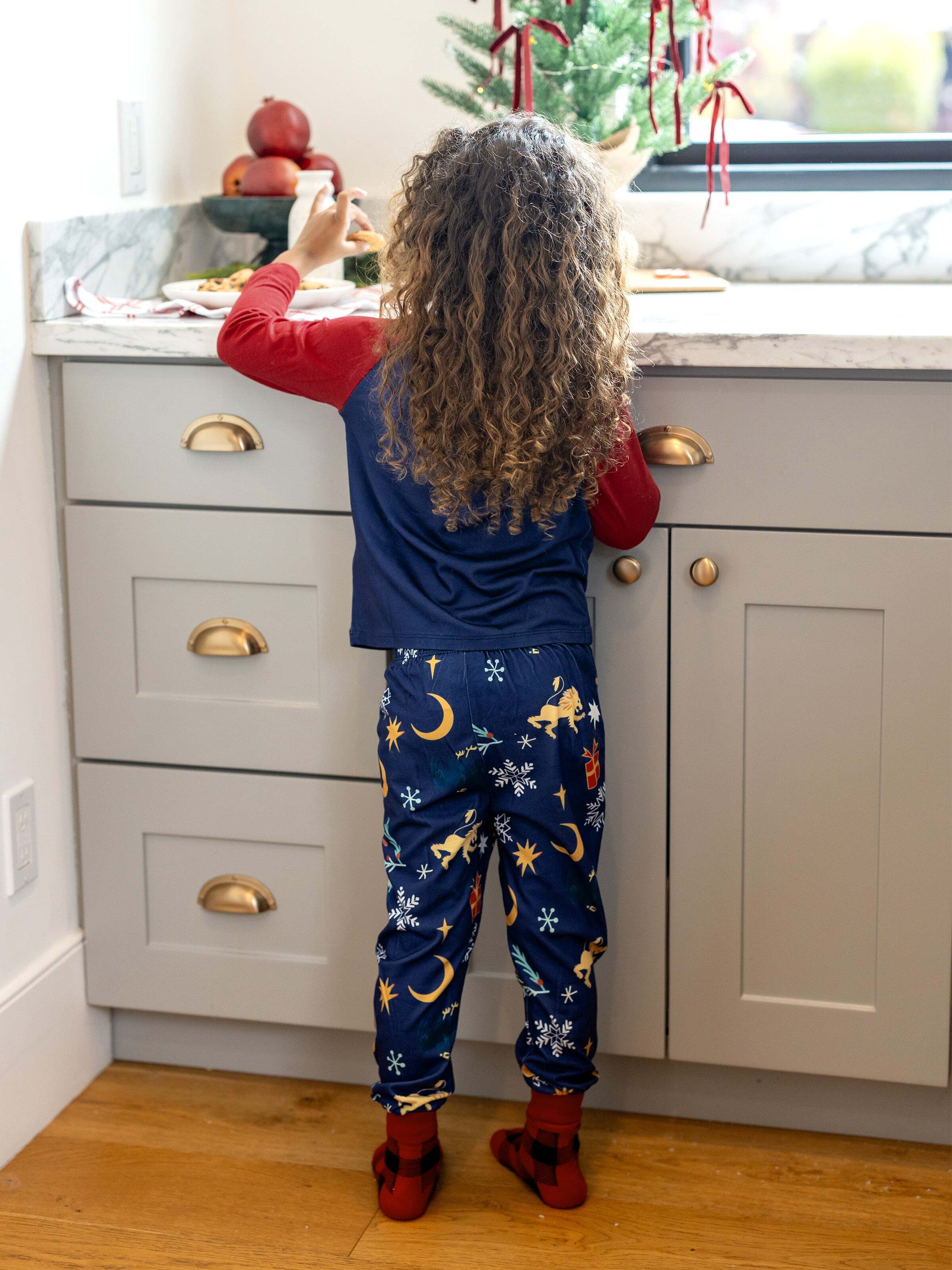 • Each pajama set includes a pair of festive buffalo plaid socks.