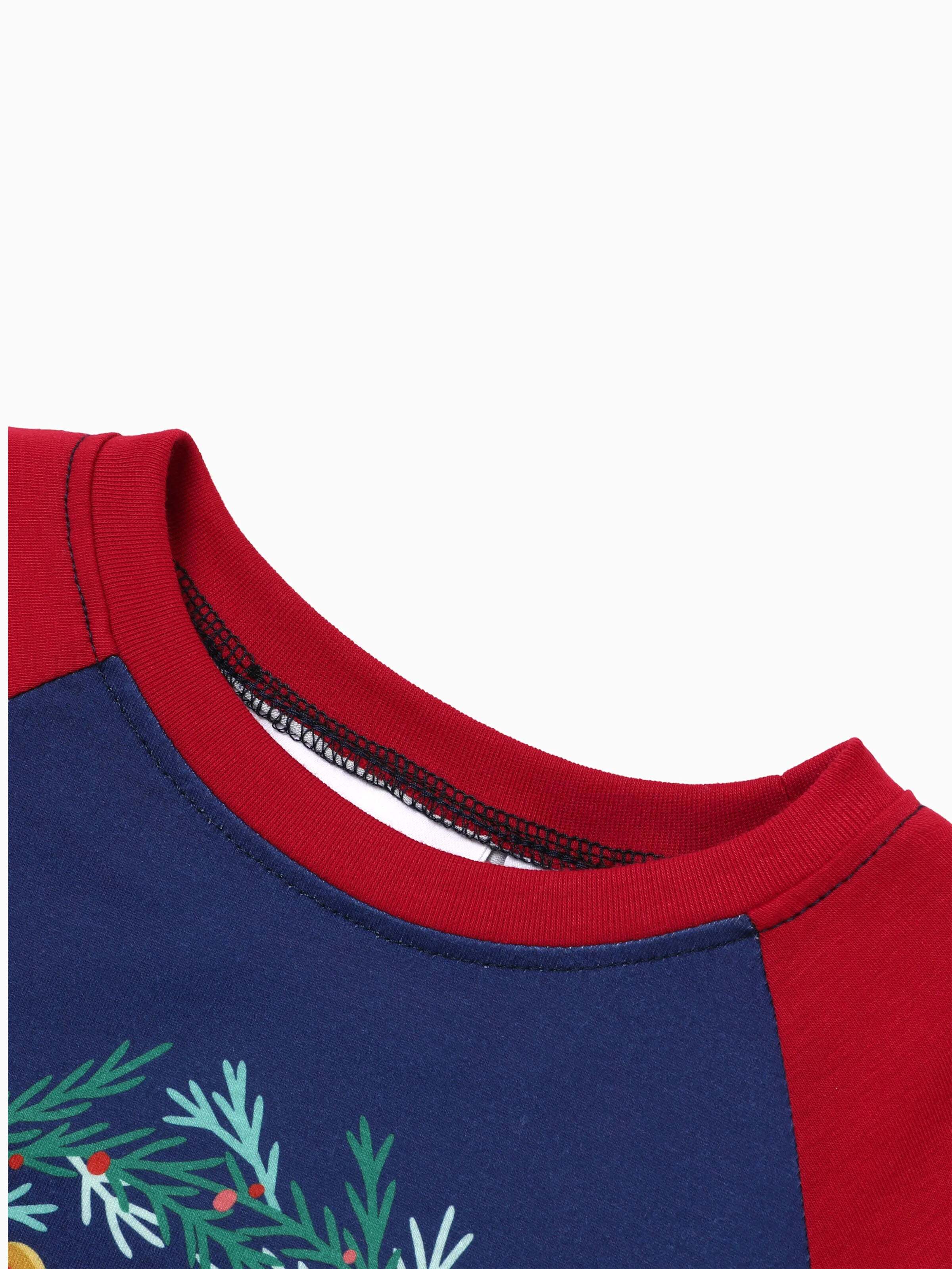Bring the magic home for the holidays with coordinated pajamas for the whole family. Classic navy-and-red raglan tops feature the Hogwarts crest framed by winter greenery, paired with allover “wizarding world” print bottoms. A matching baby one-piece completes the look for picture-perfect moments.