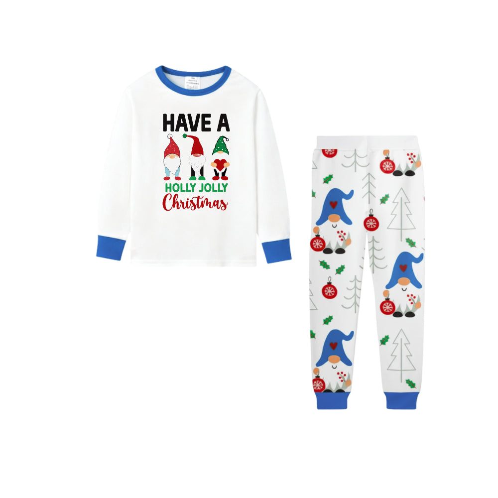 Holiday Christmas Family Blue Pajamas Set with Whimsical Gnome Pattern Print