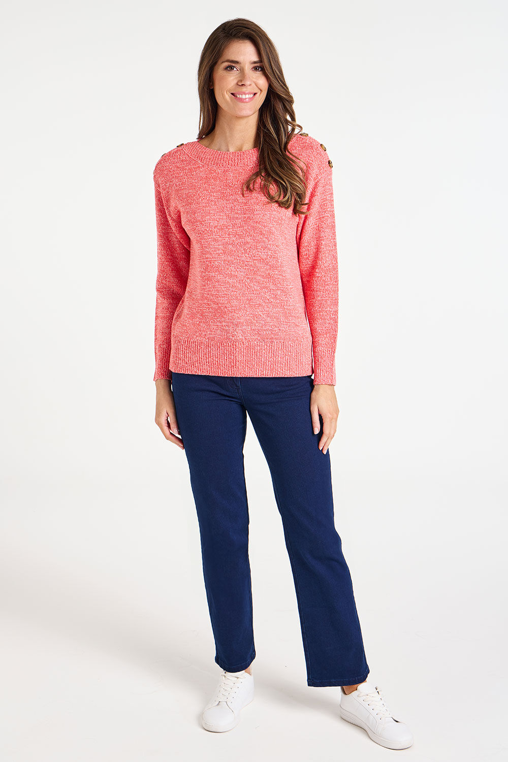 This pretty plain button detail jumper is a great staple to add to your collection this season. Complete with long sleeves and a round neckline for a classic look. Also featuring a pretty button shoulder detail. Pair this jumper with jeans and boots for a great casual look. Length: 64 (cm) 25 (inch) Material: 100% Acrylic Product Care: Machine Washable Product Code: 9008393 Size & Fit