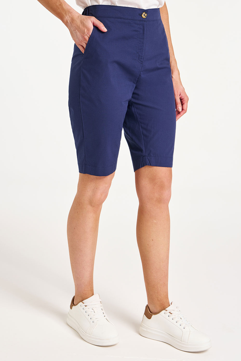 Flattering and lightweight, these stylish shorts are perfect for warmer weather and holidays. Easy to slip on and off and comfortable to wear, with an elasticated back, pockets, and a button front, these shorts are ideal for weekends in the garden or days out. Length: 28 (cm) 11 (inch) Material: 100% Cotton Product Care: Machine Washable Product Code: 9008613 Size & Fit