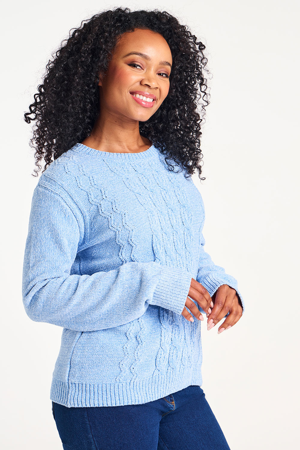 - Cable Knit Front
