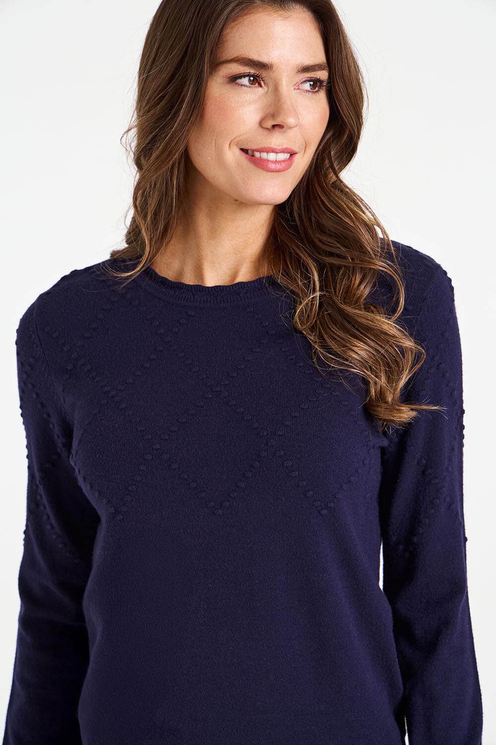 Update your wardrobe basics with this beautiful jumper. It features a diamond stitch front along with long sleeves and round neckline to keep you comfortable. Pair with your favourite jeans and boots for a smart casual look. Length: 62 (cm) 24 (inch) Material: 50% Viscose, 28% Polyester, 22% Polyamide Product Care: Machine Washable Product Code: 9008560 Size & Fit