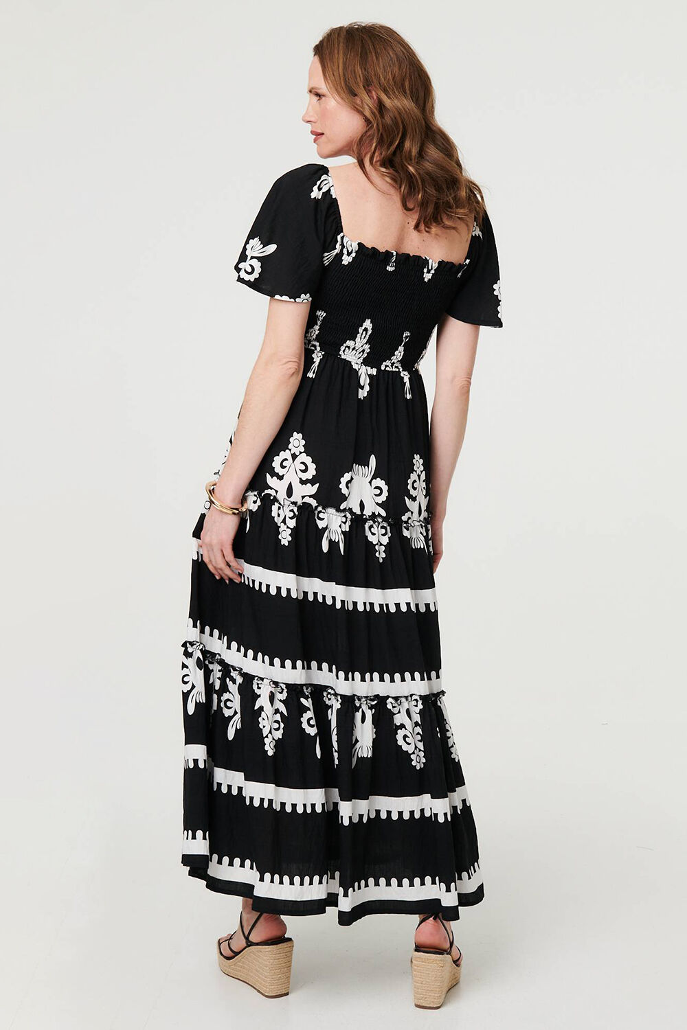 IZABEL LONDON | This relaxed dress is elegant, comfortable and stylish. It has short angel sleeves, a square neck and frilled trims. The shirred top will create a tummy-flattering look on your body, and the skirt features elegant pleats and a tiered cut that will move beautifully as you do. It's made from a viscose blend for a comfortable fit too.