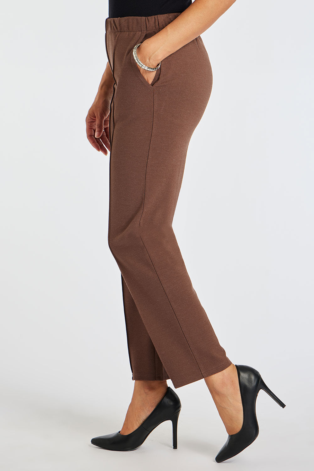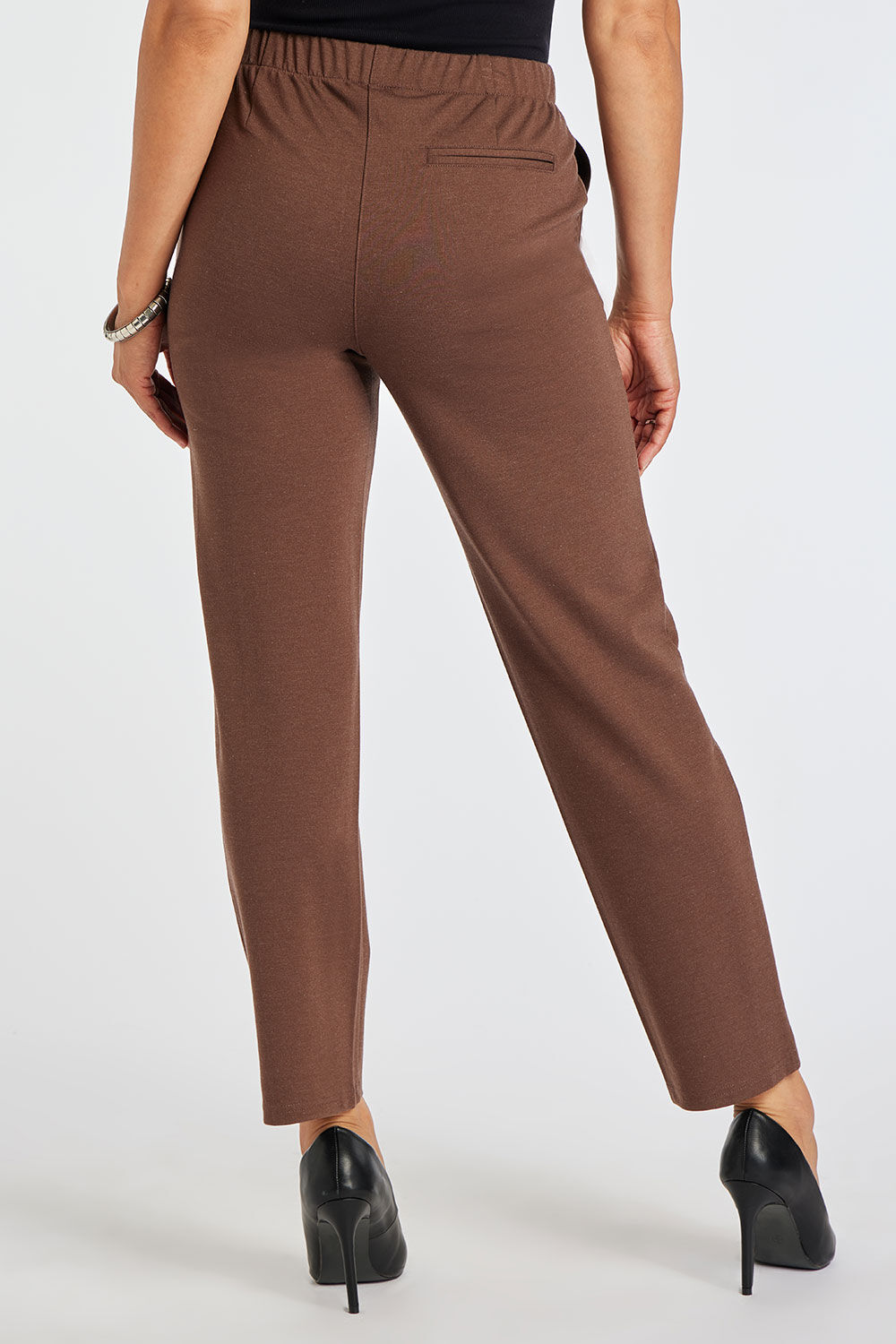 Pleat Front Jersey Marl Tapered Leg Elasticated Trousers